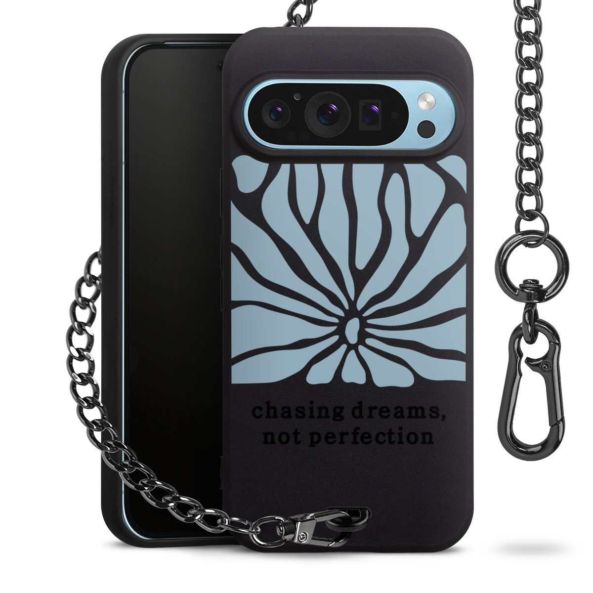 • Mattschwarze Handyhülle mit Metallkette