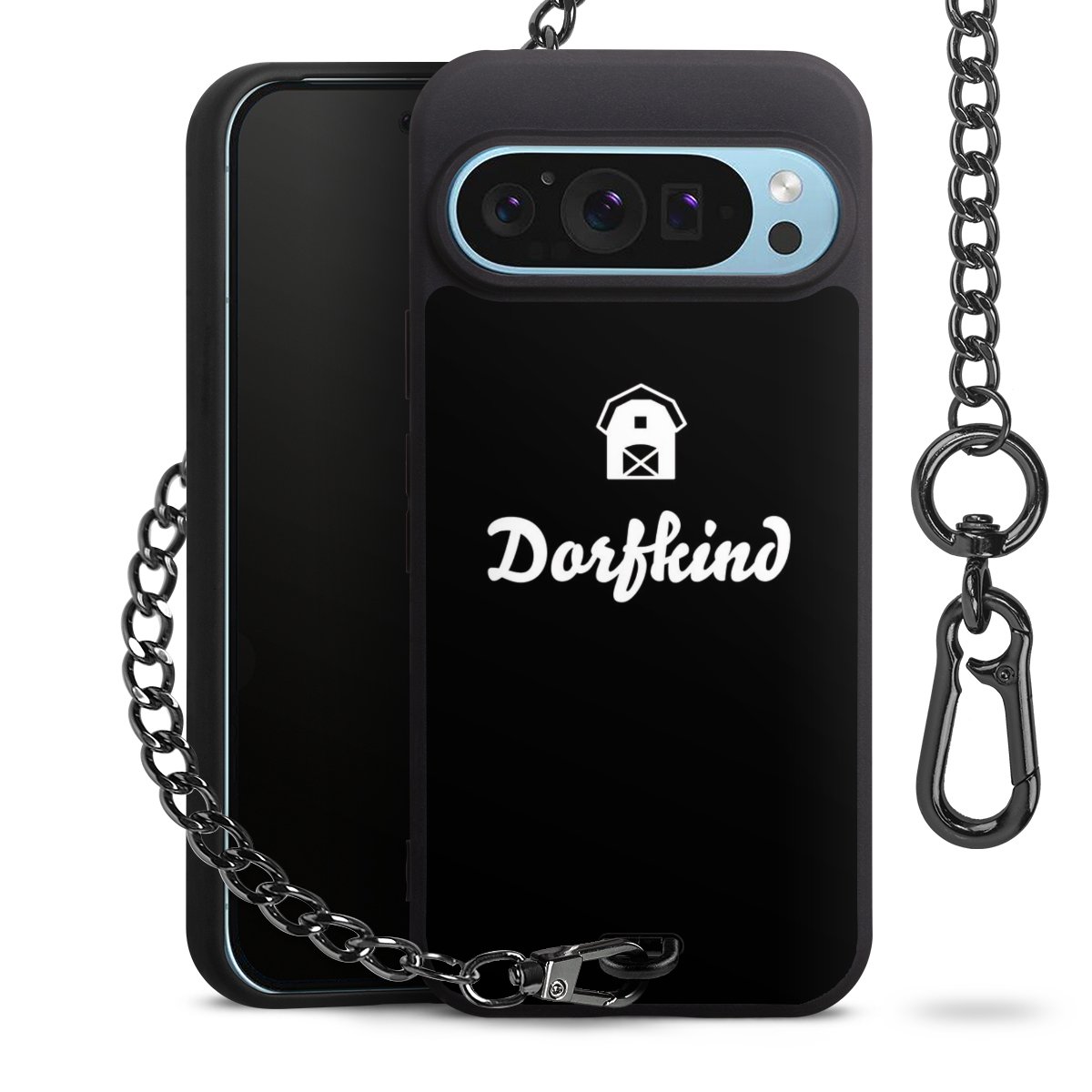 Die mattschwarze Silikon-Handyhülle besteht aus robustem TPU (thermoplastisches Polyurethan). Sie ist flexibel und schützt Dein Smartphone vor Stößen und Kratzern. Die Kette sowie der Karabinerhaken sind aus Metall in Gunmetal-Optik gefertigt. Für dieses Produkt kommen ausschließlich TÜV-geprüfte Materialien zum Einsatz.