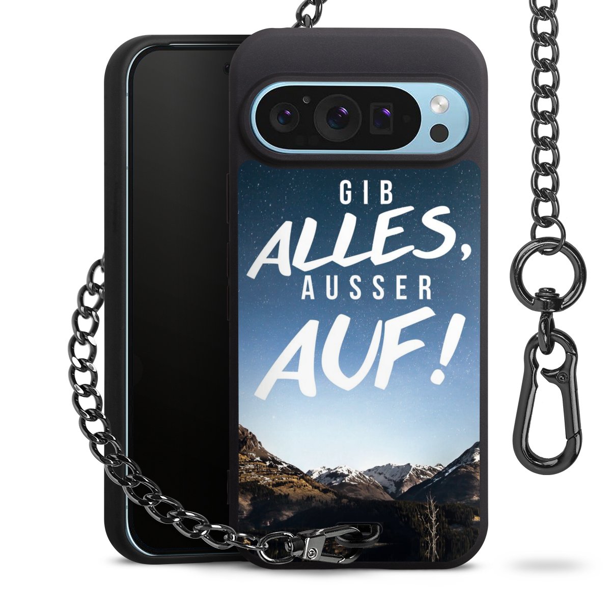• Mattschwarze Handyhülle mit Metallkette
