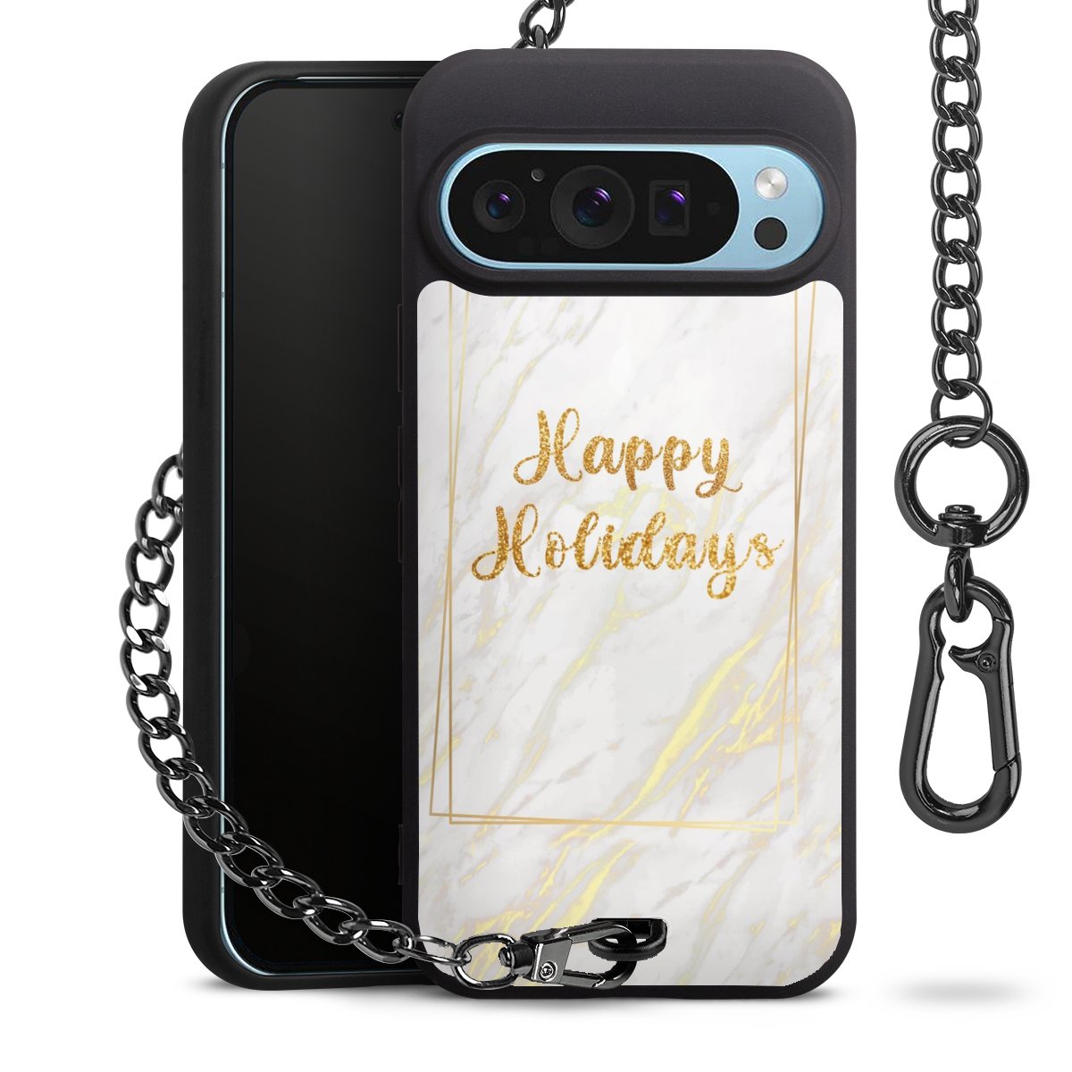 - Mattschwarze Handyhülle mit Metallkette
