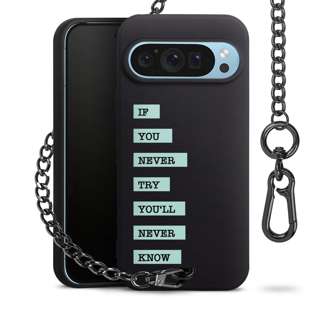 - Mattschwarze Handyhülle mit Metallkette