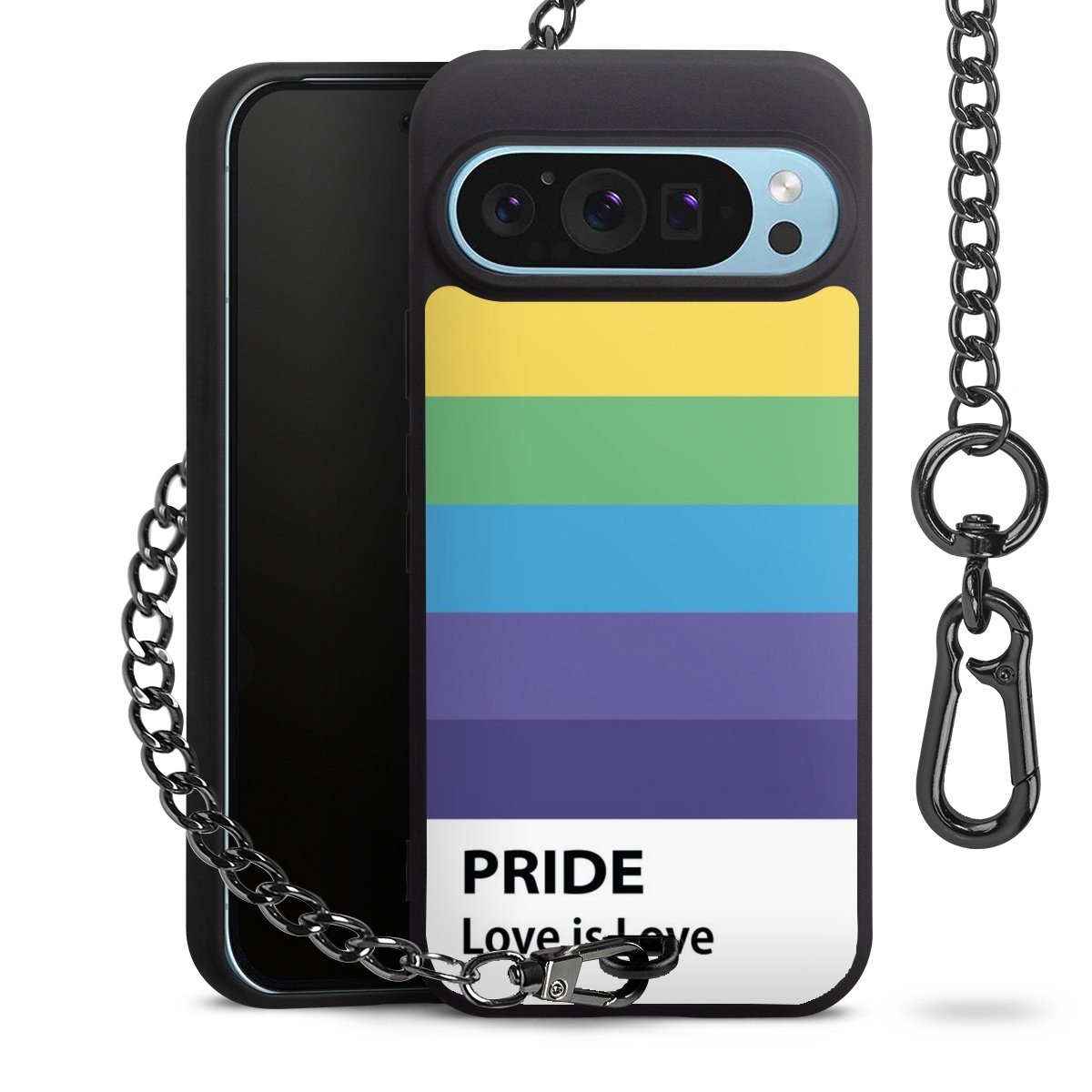 Die mattschwarze Silikon-Handyhülle besteht aus robustem TPU (thermoplastisches Polyurethan). Sie ist flexibel und schützt Dein Smartphone vor Stößen und Kratzern. Die Kette sowie der Karabinerhaken sind aus Metall in Gunmetal-Optik gefertigt. Für dieses Produkt kommen ausschließlich TÜV-geprüfte Materialien zum Einsatz.