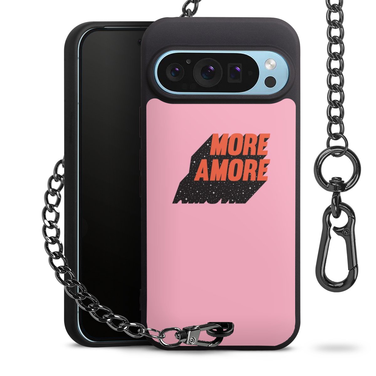 • Mattschwarze Handyhülle mit Metallkette