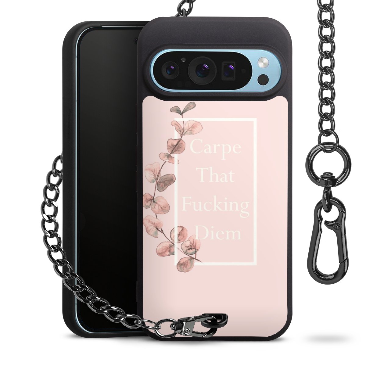 Die mattschwarze Silikon-Handyhülle besteht aus robustem TPU (thermoplastisches Polyurethan). Sie ist flexibel und schützt Dein Smartphone vor Stößen und Kratzern. Die Kette sowie der Karabinerhaken sind aus Metall in Gunmetal-Optik gefertigt. Für dieses Produkt kommen ausschließlich TÜV-geprüfte Materialien zum Einsatz.