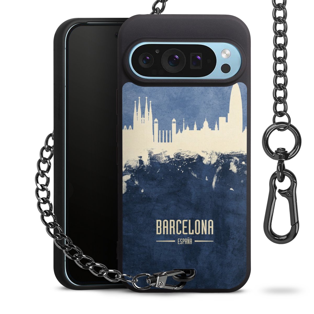 • Mattschwarze Handyhülle mit Metallkette