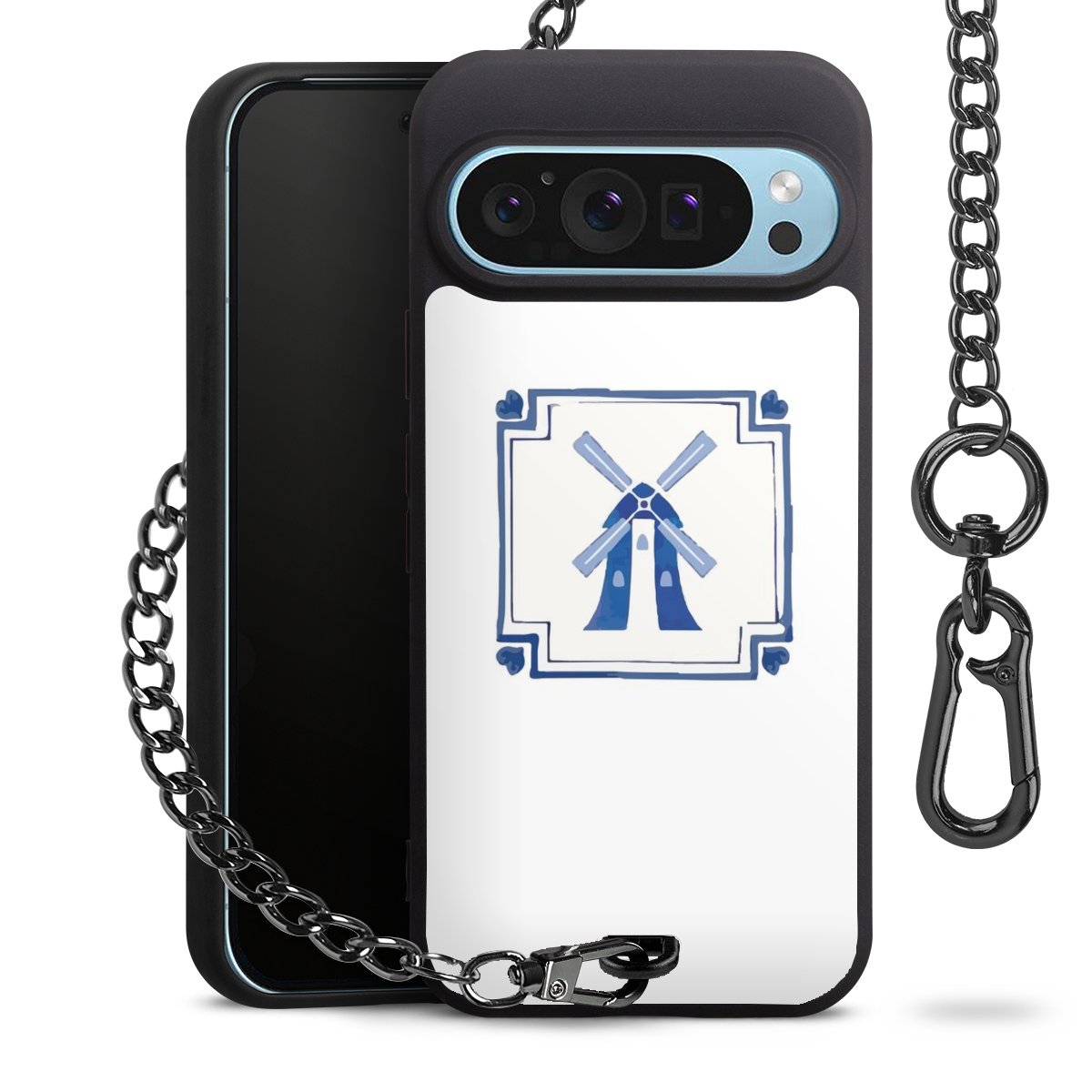 • Mattschwarze Handyhülle mit Metallkette
