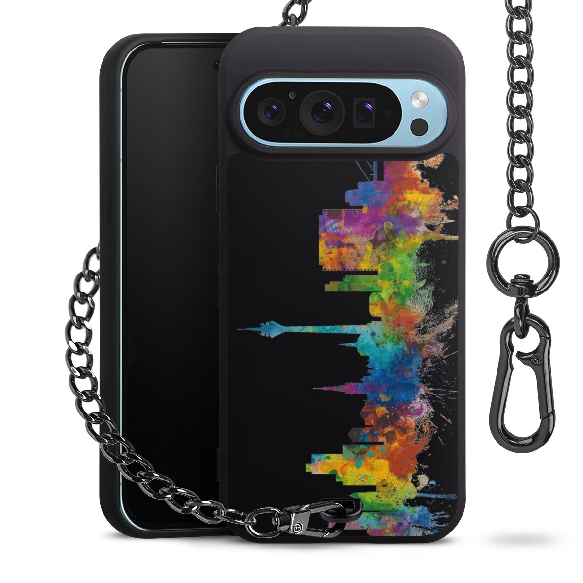 Die mattschwarze Silikon-Handyhülle besteht aus robustem TPU (thermoplastisches Polyurethan). Sie ist flexibel und schützt Dein Smartphone vor Stößen und Kratzern. Die Kette sowie der Karabinerhaken sind aus Metall in Gunmetal-Optik gefertigt. Für dieses Produkt kommen ausschließlich TÜV-geprüfte Materialien zum Einsatz.