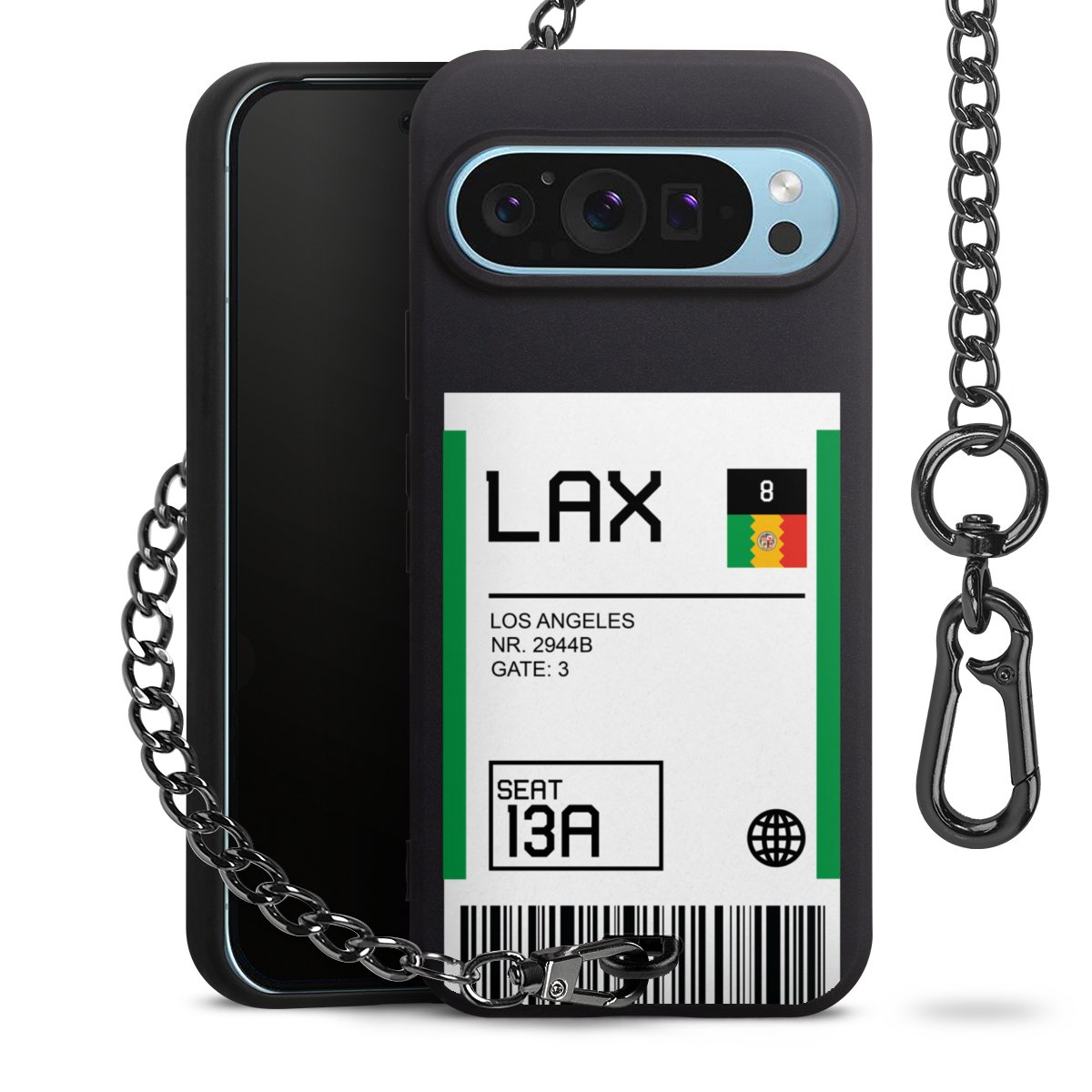 • Mattschwarze Handyhülle mit Metallkette