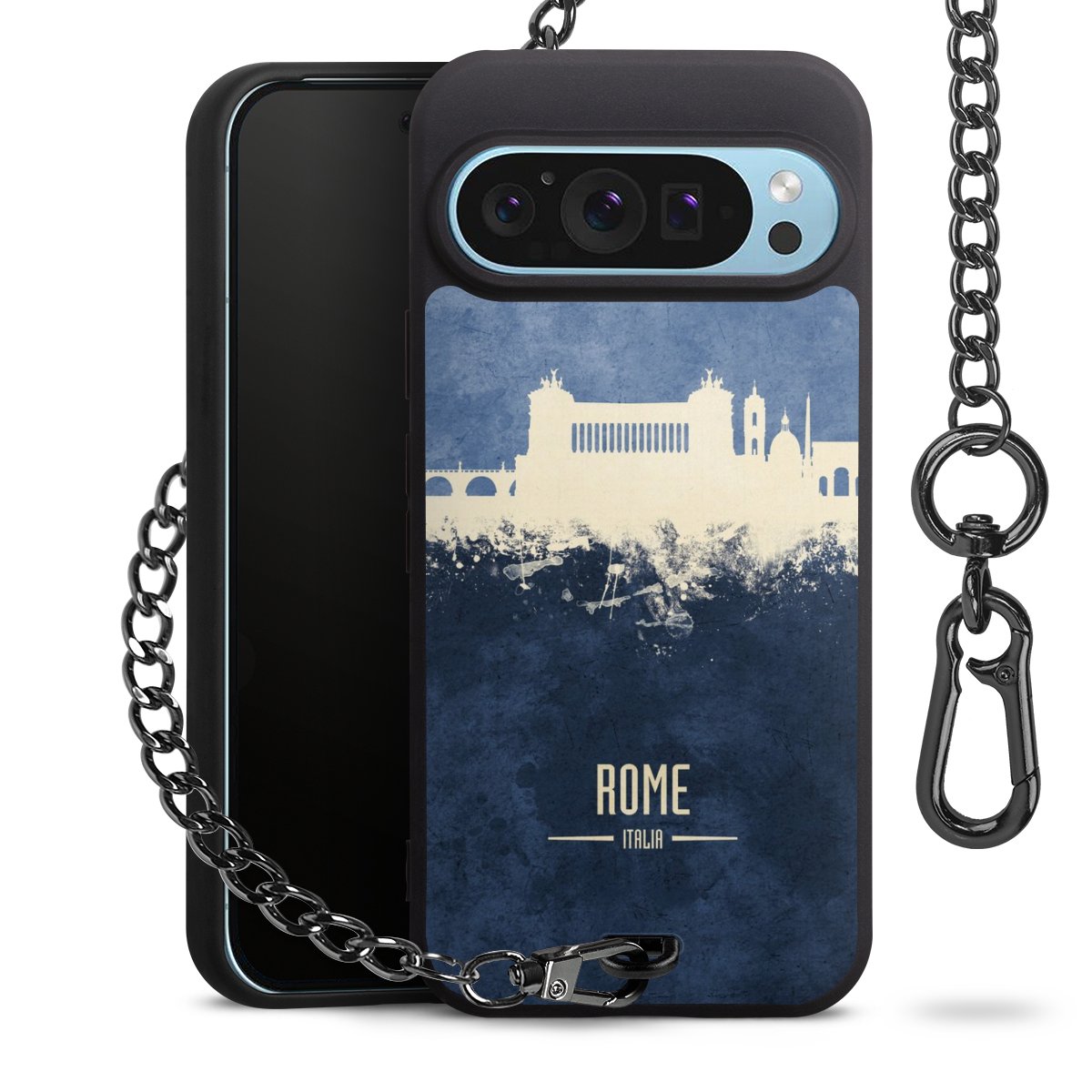 Die mattschwarze Silikon-Handyhülle besteht aus robustem TPU (thermoplastisches Polyurethan). Sie ist flexibel und schützt Dein Smartphone vor Stößen und Kratzern. Die Kette sowie der Karabinerhaken sind aus Metall in Gunmetal-Optik gefertigt. Für dieses Produkt kommen ausschließlich TÜV-geprüfte Materialien zum Einsatz.