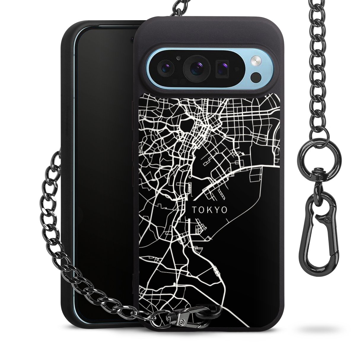 • Mattschwarze Handyhülle mit Metallkette