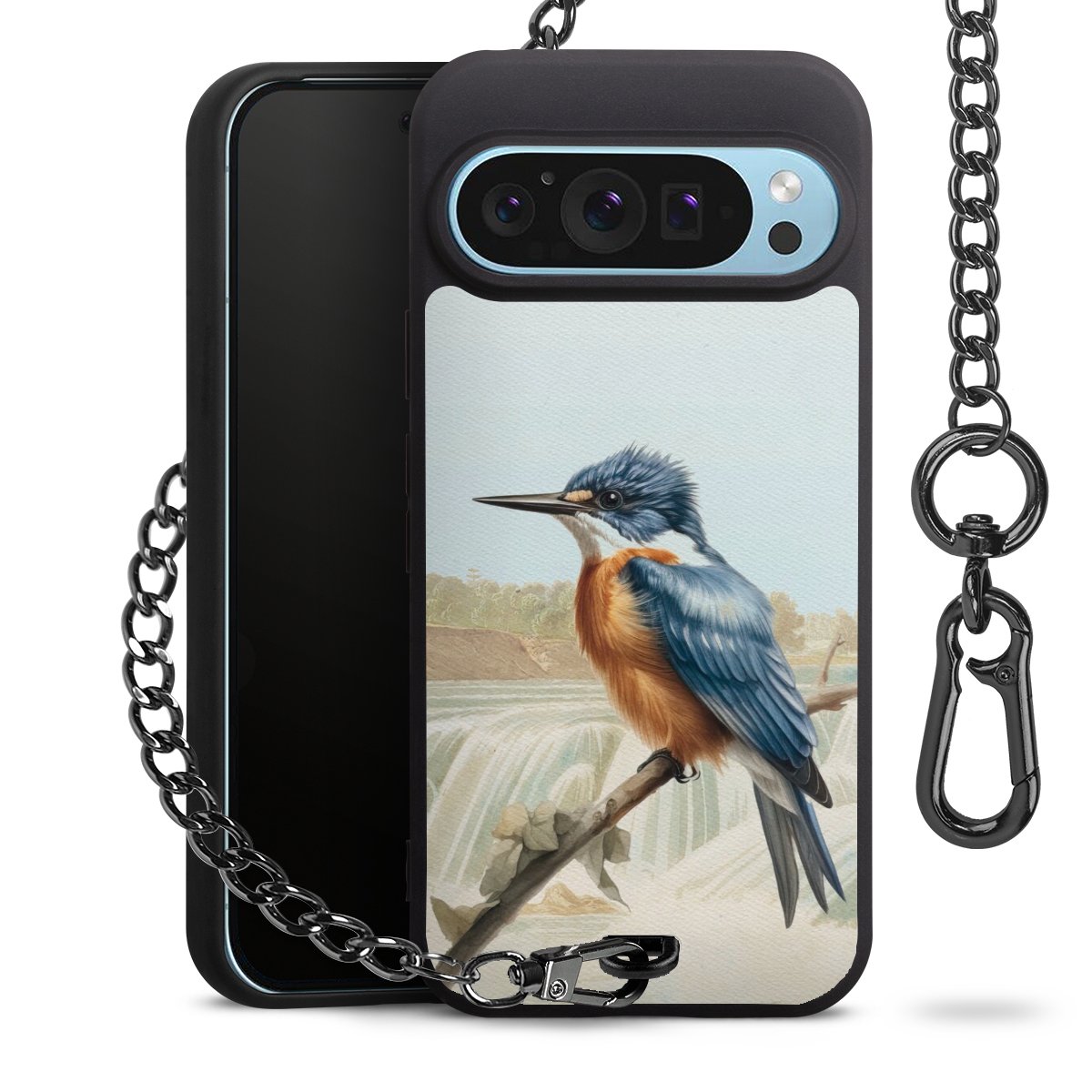 • Mattschwarze Handyhülle mit Metallkette