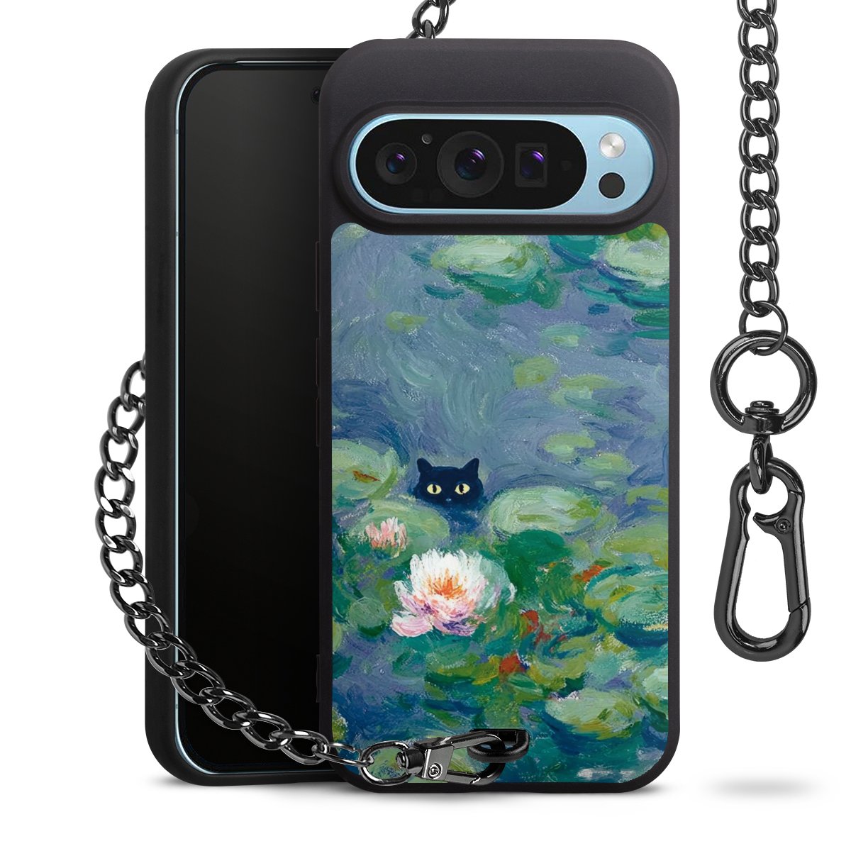 • Mattschwarze Handyhülle mit Metallkette