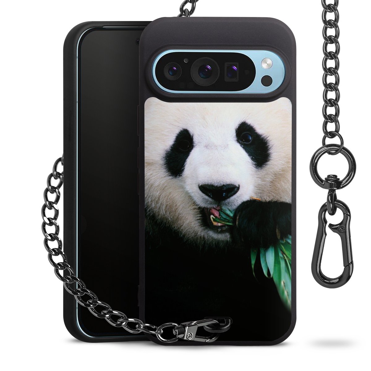 • Mattschwarze Handyhülle mit Metallkette