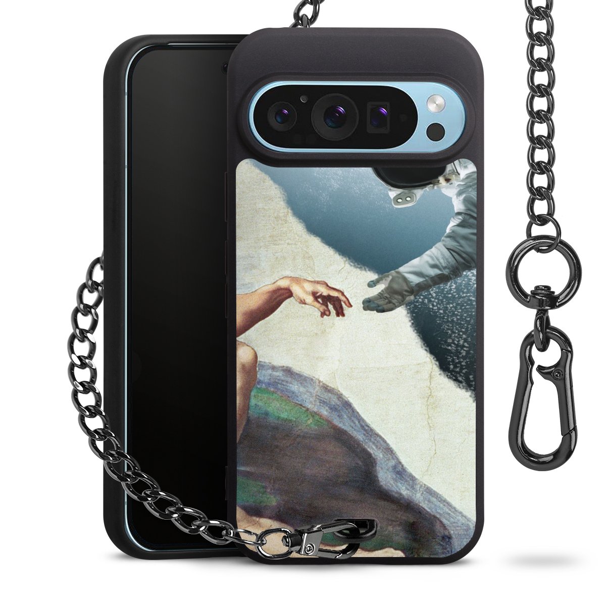 - Mattschwarze Handyhülle mit Metallkette