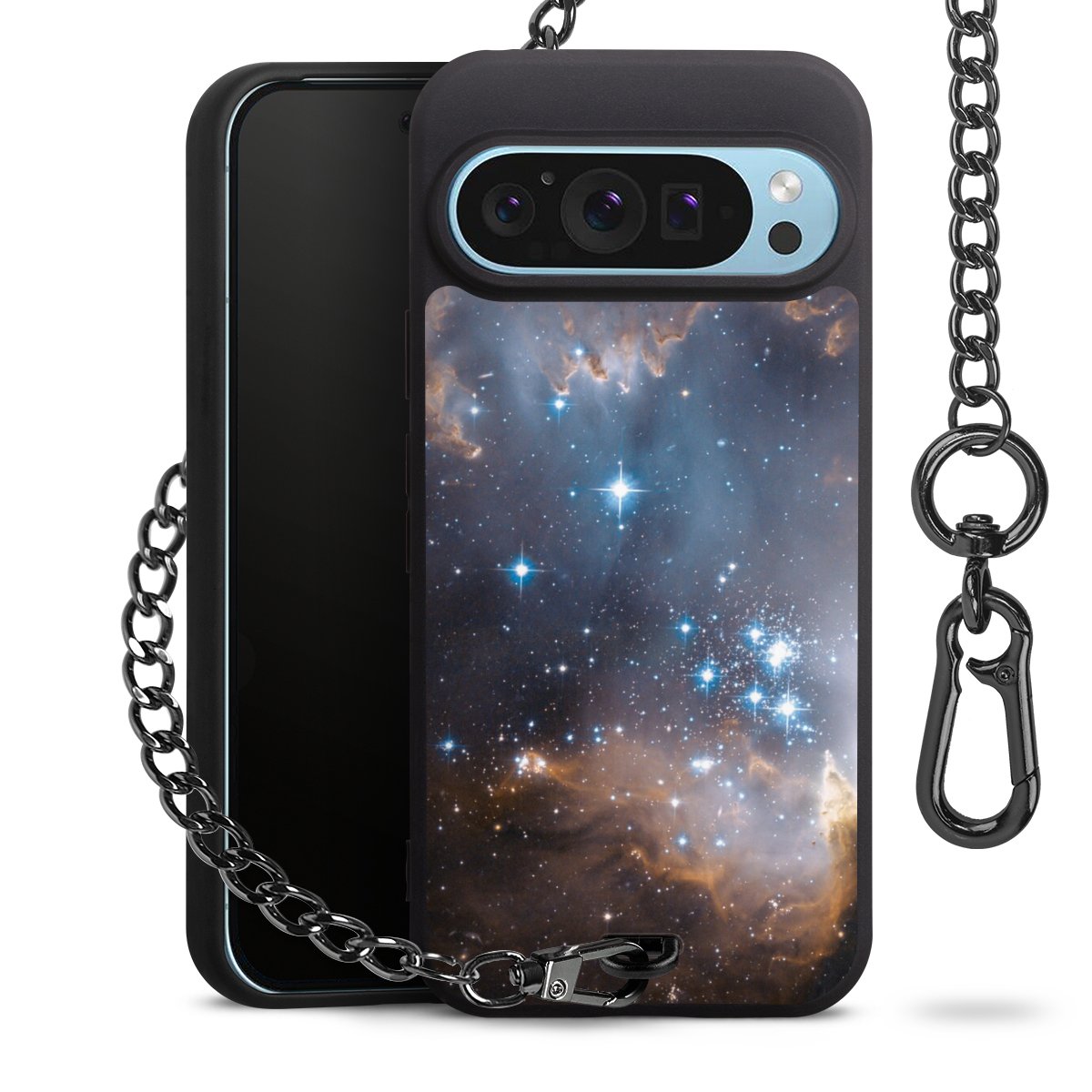 - Mattschwarze Handyhülle mit Metallkette