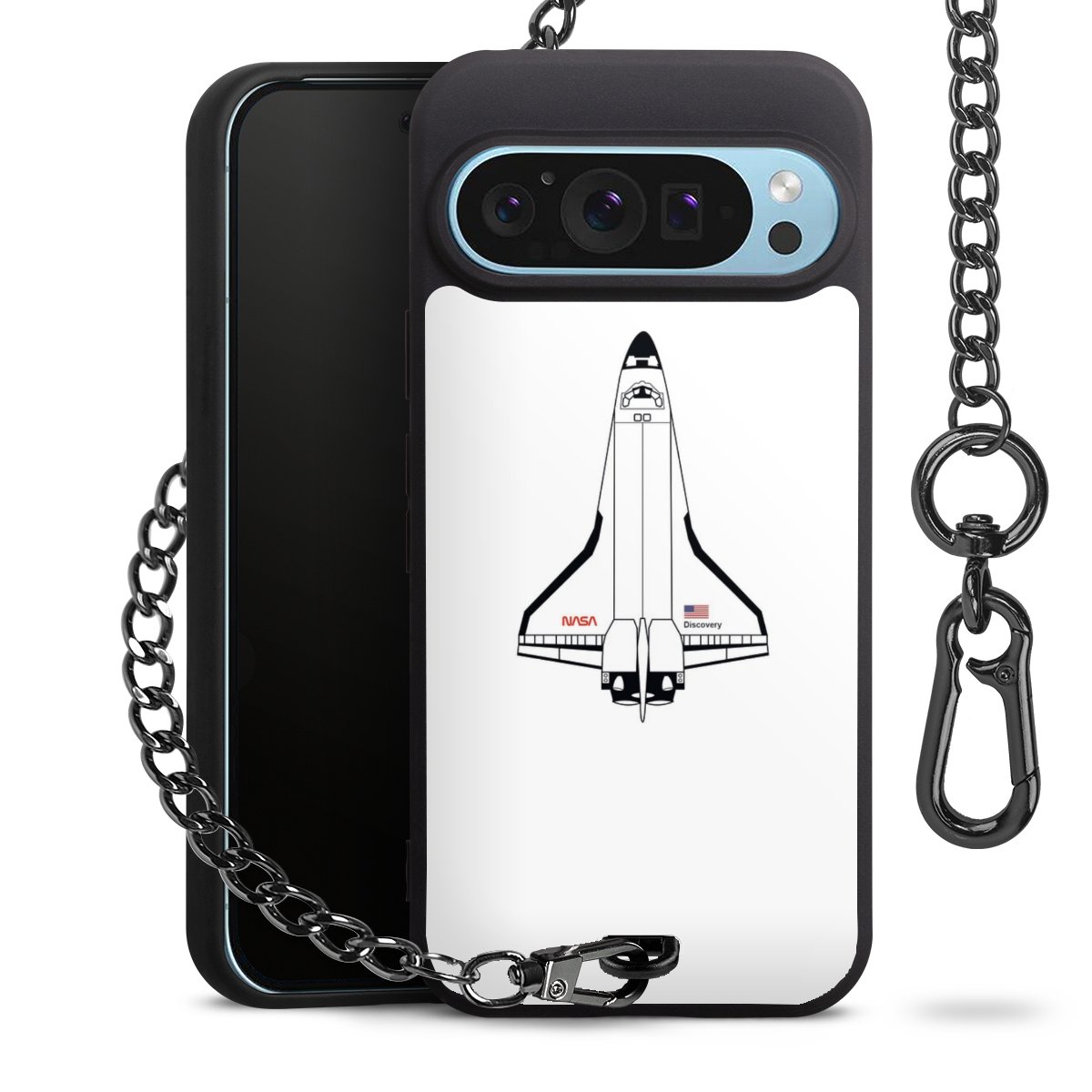 - Mattschwarze Handyhülle mit Metallkette