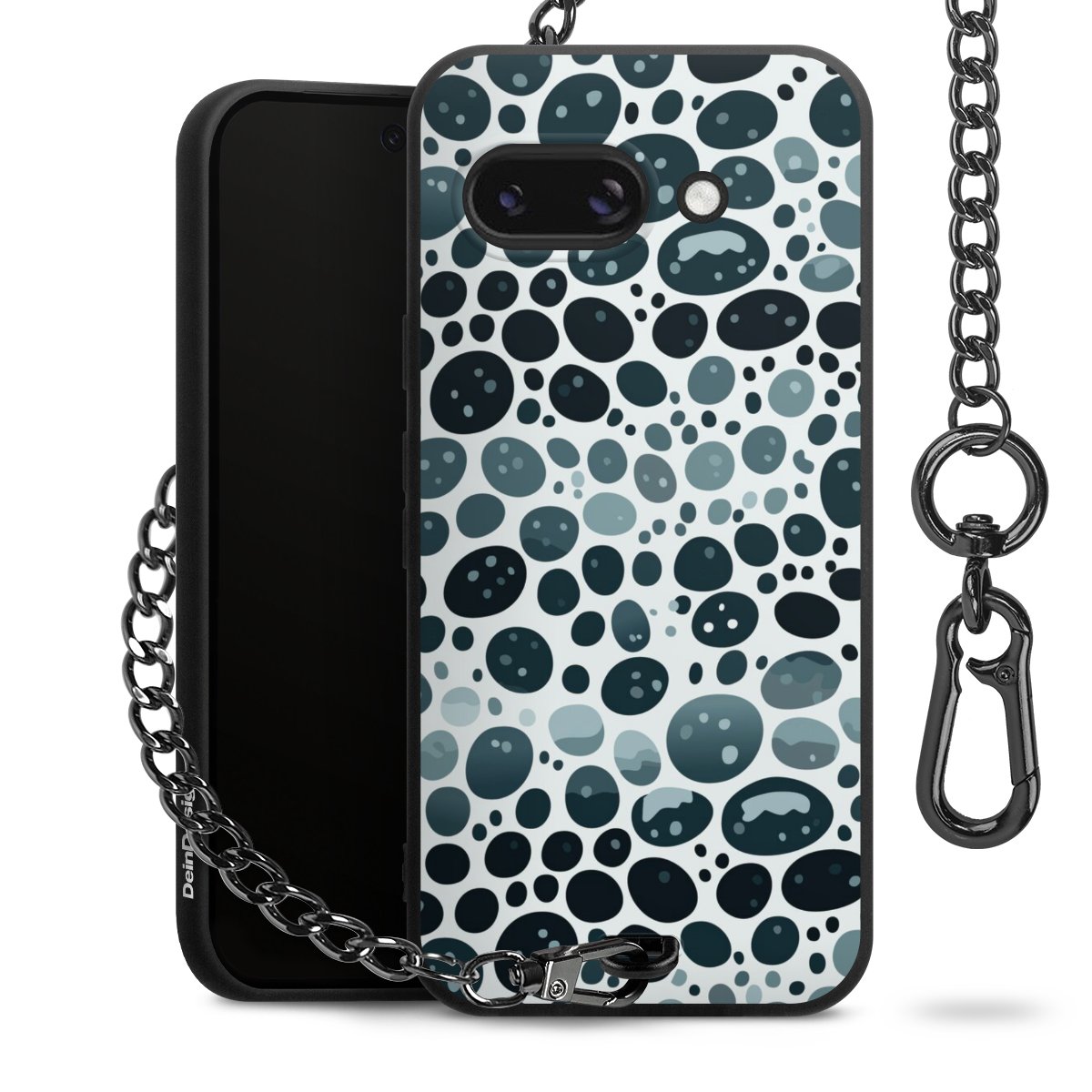 Die mattschwarze Silikon-Handyhülle besteht aus robustem TPU (thermoplastisches Polyurethan). Sie ist flexibel und schützt Dein Smartphone vor Stößen und Kratzern. Die Kette sowie der Karabinerhaken sind aus Metall in Gunmetal-Optik gefertigt. Für dieses Produkt kommen ausschließlich TÜV-geprüfte Materialien zum Einsatz.