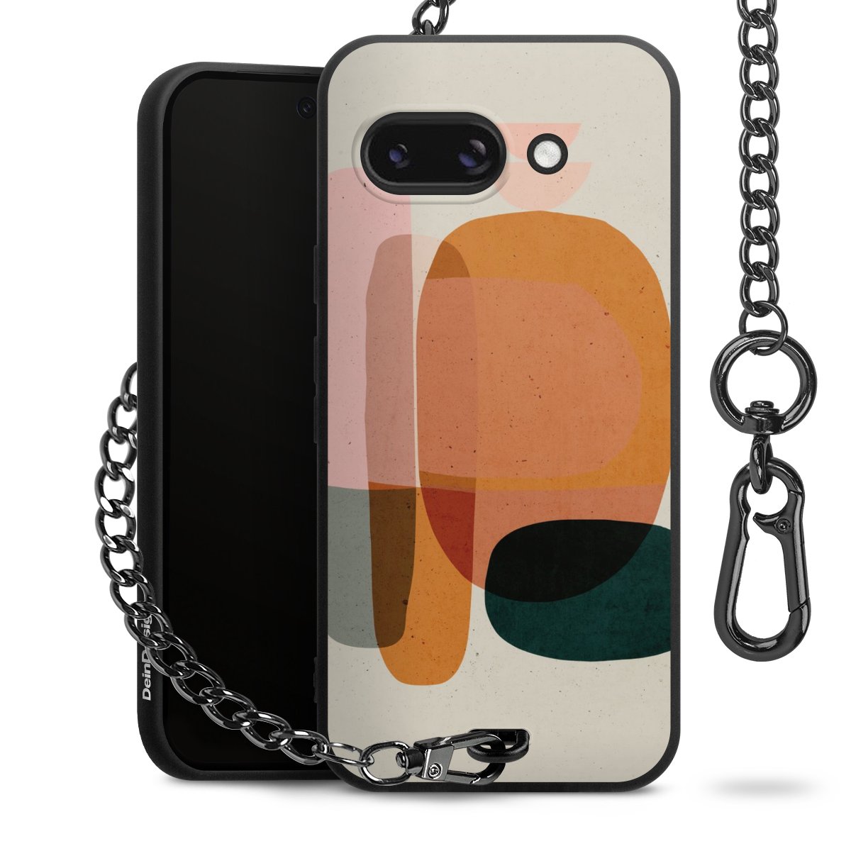 • Mattschwarze Handyhülle mit Metallkette