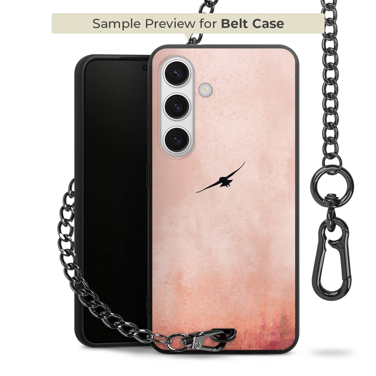 Ob im Alltag, beim Feiern mit Deinen Jungs oder auf Festivals – mit dem superpraktischen Belt Case steckst Du alle Sorgen um Diebstahl und Spider-App ganz entspannt in die Tasche. Es besteht aus einem coolen mattschwarzen Silikon Premium Case, dem Du ein individuelles Design verpassen kannst, und einer daran befestigten Kette in lässiger Gunmetal-Optik. Mit dem Karabiner auf der anderen Seite klickst Du die Kette mit einem Handgriff an Deine Gürtelschlaufe und schon ist Dein Smartphone sicher und stets griffbereit in der Hosentasche verstaut.