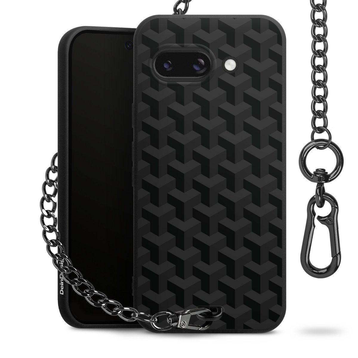 - Mattschwarze Handyhülle mit Metallkette