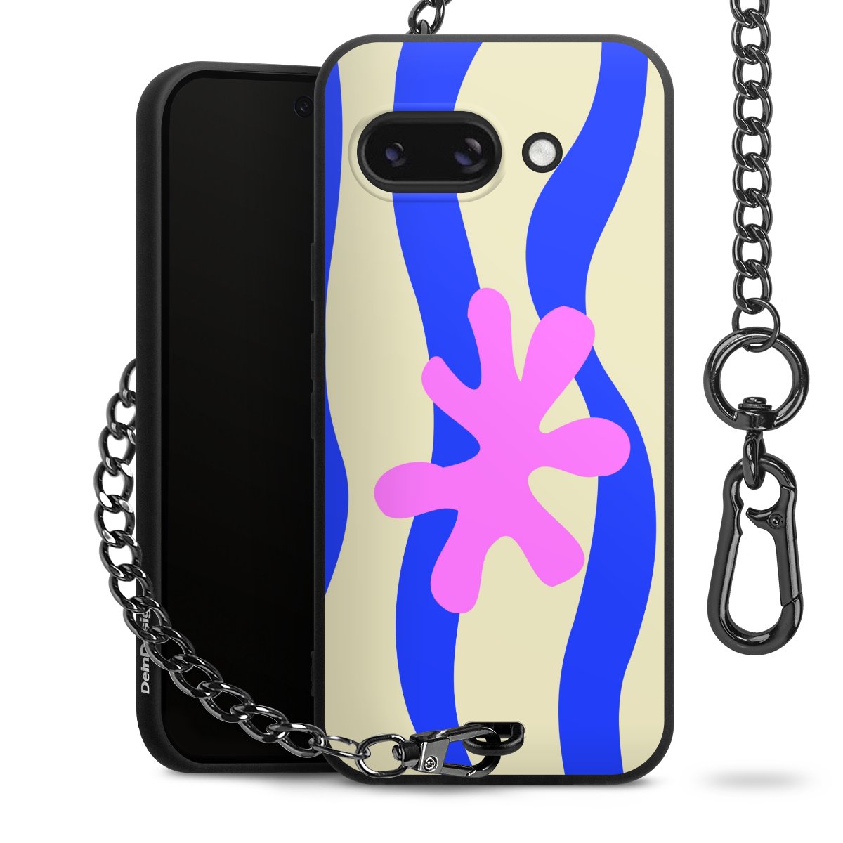 Die mattschwarze Silikon-Handyhülle besteht aus robustem TPU (thermoplastisches Polyurethan). Sie ist flexibel und schützt Dein Smartphone vor Stößen und Kratzern. Die Kette sowie der Karabinerhaken sind aus Metall in Gunmetal-Optik gefertigt. Für dieses Produkt kommen ausschließlich TÜV-geprüfte Materialien zum Einsatz.