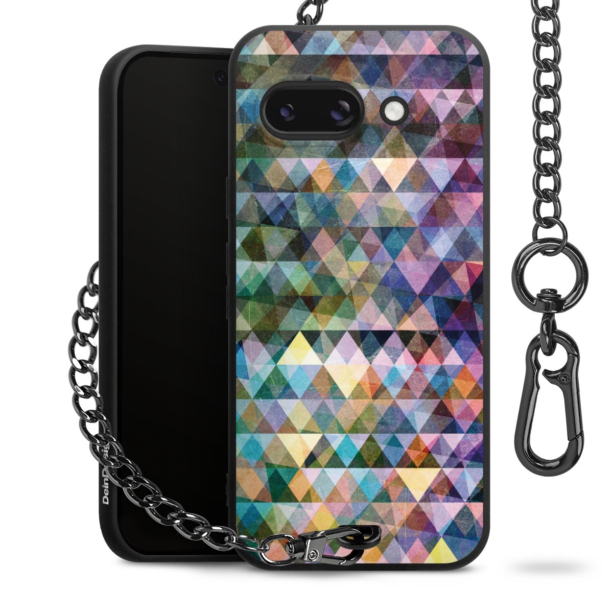 Die mattschwarze Silikon-Handyhülle besteht aus robustem TPU (thermoplastisches Polyurethan). Sie ist flexibel und schützt Dein Smartphone vor Stößen und Kratzern. Die Kette sowie der Karabinerhaken sind aus Metall in Gunmetal-Optik gefertigt. Für dieses Produkt kommen ausschließlich TÜV-geprüfte Materialien zum Einsatz.