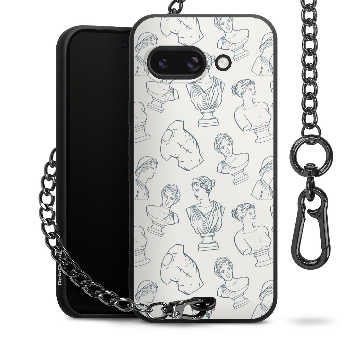 Die mattschwarze Silikon-Handyhülle besteht aus robustem TPU (thermoplastisches Polyurethan). Sie ist flexibel und schützt Dein Smartphone vor Stößen und Kratzern. Die Kette sowie der Karabinerhaken sind aus Metall in Gunmetal-Optik gefertigt. Für dieses Produkt kommen ausschließlich TÜV-geprüfte Materialien zum Einsatz.