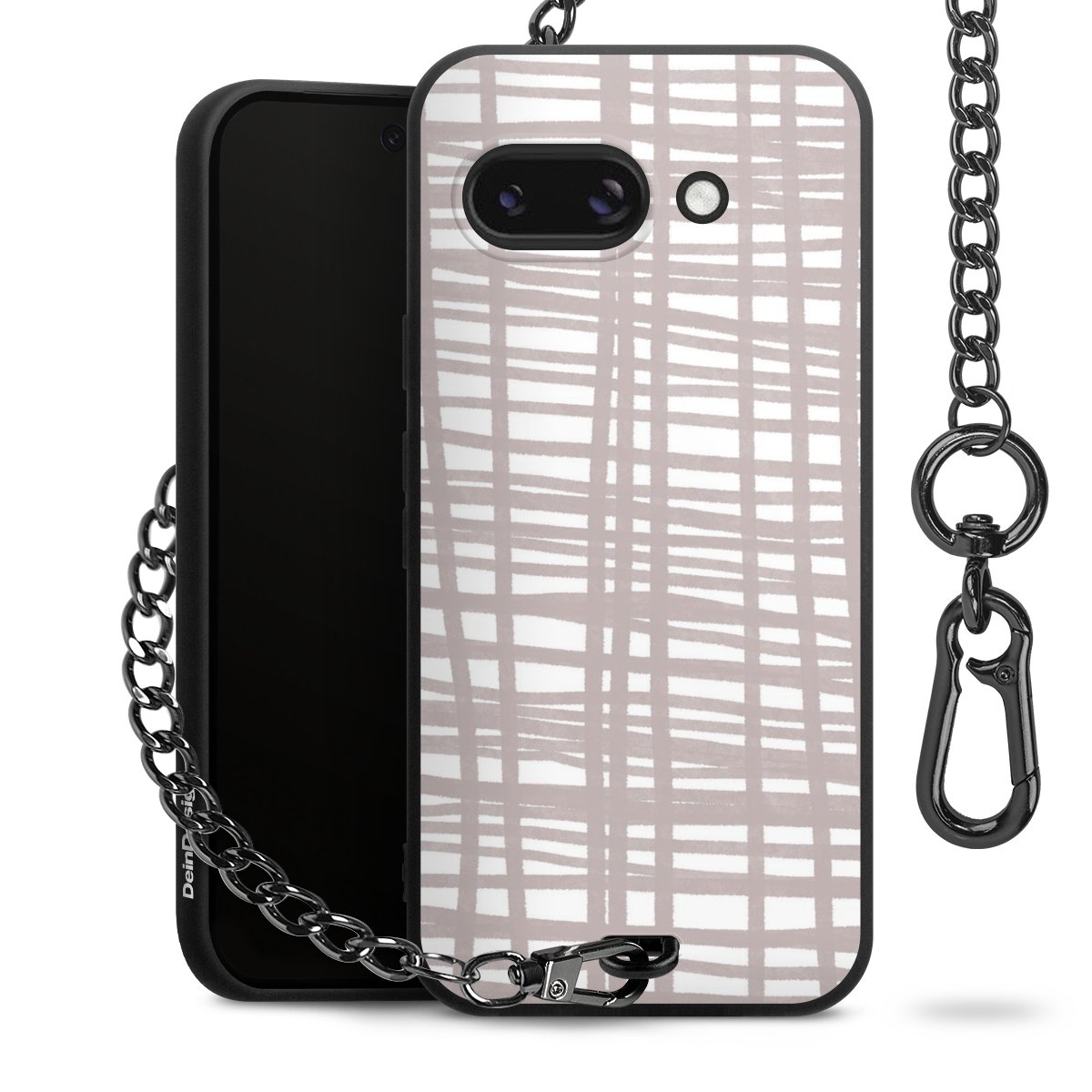 • Mattschwarze Handyhülle mit Metallkette
