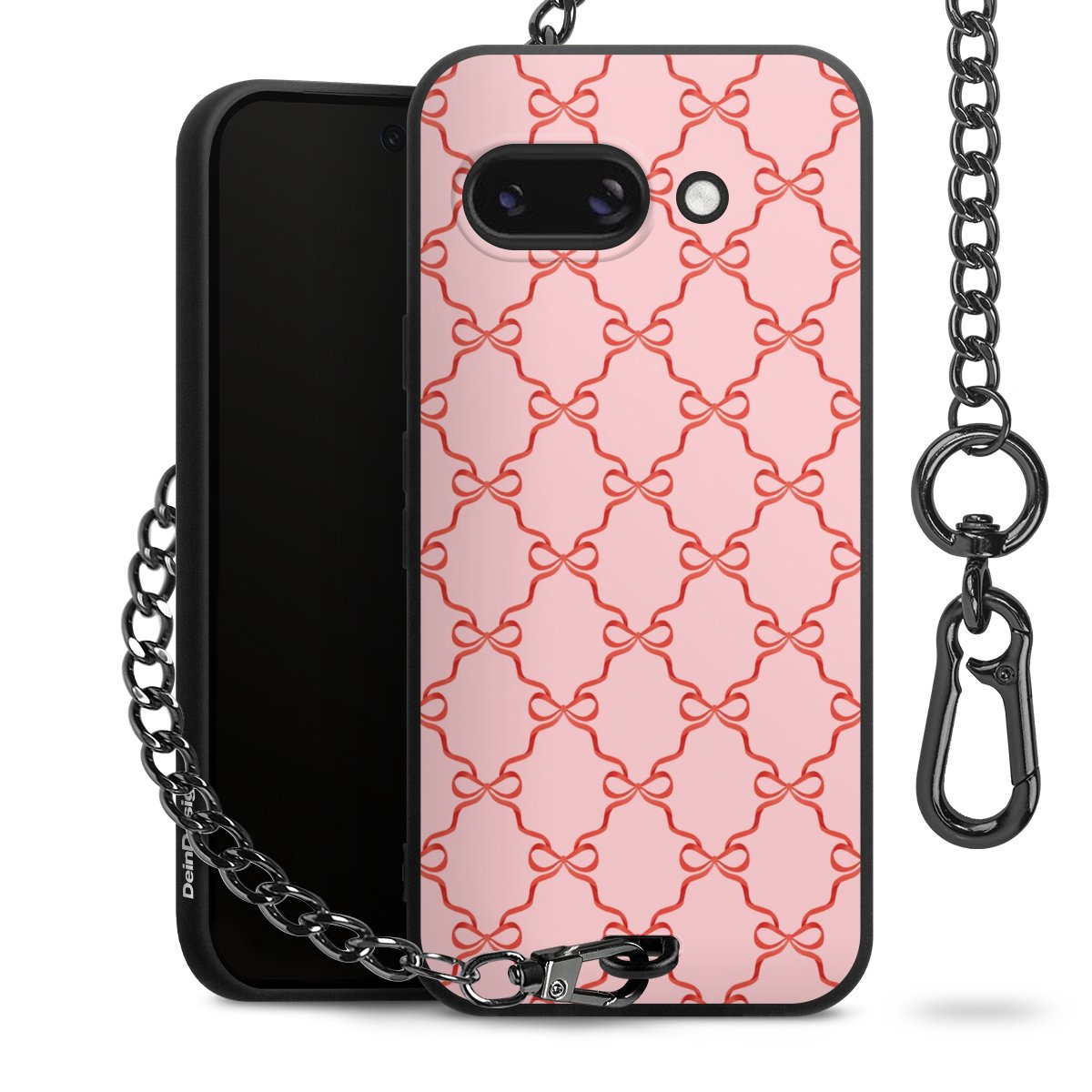 Die mattschwarze Silikon-Handyhülle besteht aus robustem TPU (thermoplastisches Polyurethan). Sie ist flexibel und schützt Dein Smartphone vor Stößen und Kratzern. Die Kette sowie der Karabinerhaken sind aus Metall in Gunmetal-Optik gefertigt. Für dieses Produkt kommen ausschließlich TÜV-geprüfte Materialien zum Einsatz.