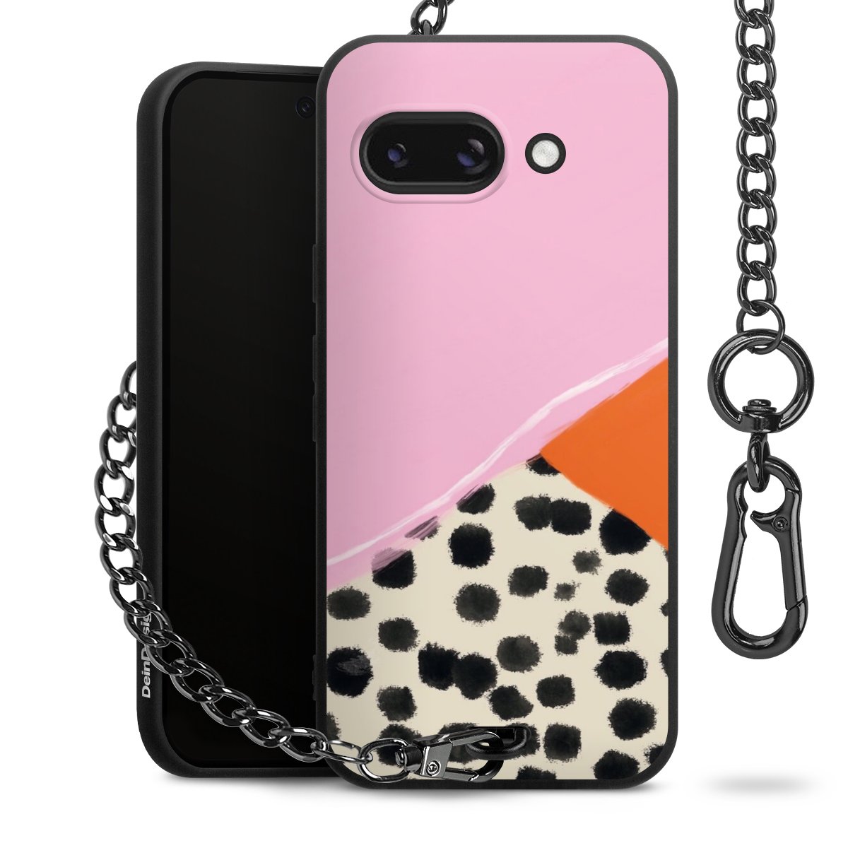 • Mattschwarze Handyhülle mit Metallkette
