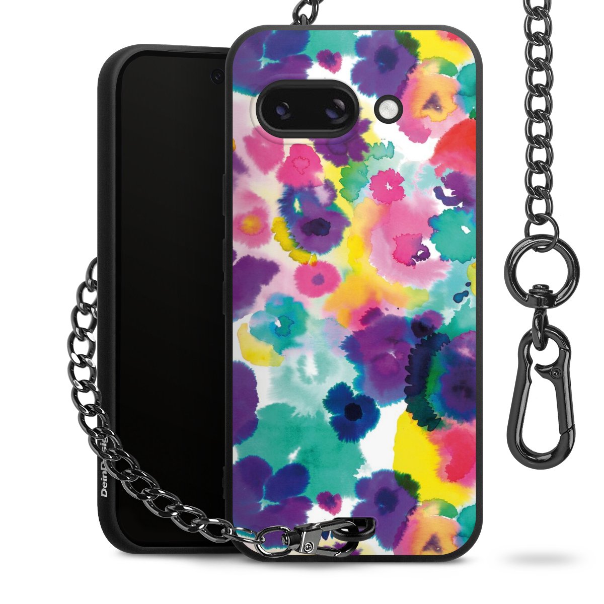 Die mattschwarze Silikon-Handyhülle besteht aus robustem TPU (thermoplastisches Polyurethan). Sie ist flexibel und schützt Dein Smartphone vor Stößen und Kratzern. Die Kette sowie der Karabinerhaken sind aus Metall in Gunmetal-Optik gefertigt. Für dieses Produkt kommen ausschließlich TÜV-geprüfte Materialien zum Einsatz.