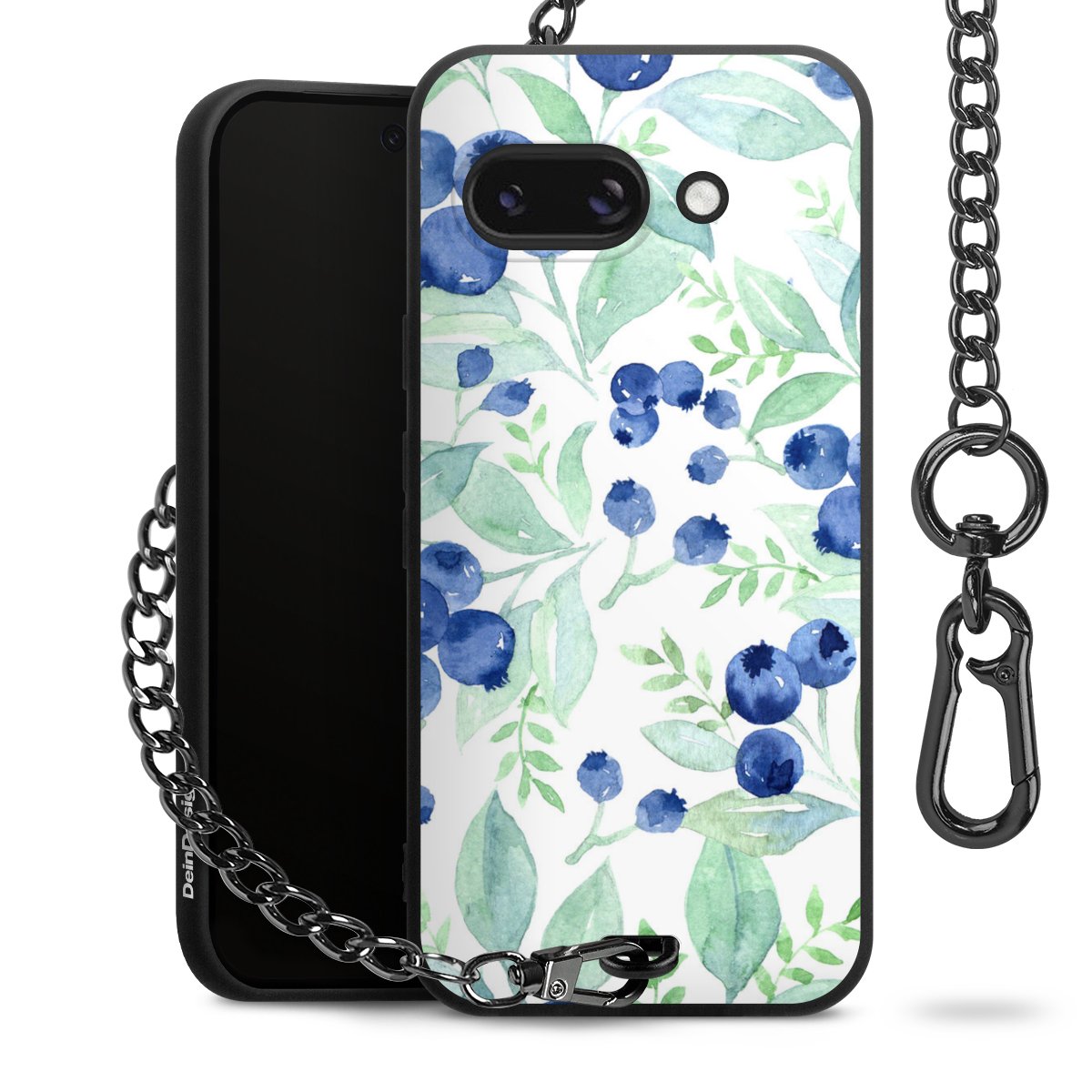 • Mattschwarze Handyhülle mit Metallkette