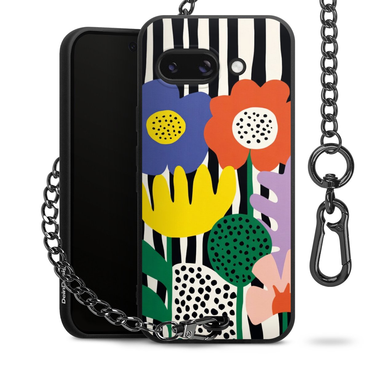 Die mattschwarze Silikon-Handyhülle besteht aus robustem TPU (thermoplastisches Polyurethan). Sie ist flexibel und schützt Dein Smartphone vor Stößen und Kratzern. Die Kette sowie der Karabinerhaken sind aus Metall in Gunmetal-Optik gefertigt. Für dieses Produkt kommen ausschließlich TÜV-geprüfte Materialien zum Einsatz.