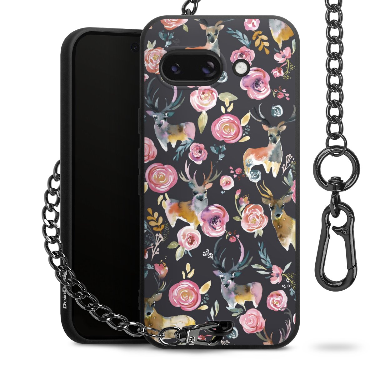 Die mattschwarze Silikon-Handyhülle besteht aus robustem TPU (thermoplastisches Polyurethan). Sie ist flexibel und schützt Dein Smartphone vor Stößen und Kratzern. Die Kette sowie der Karabinerhaken sind aus Metall in Gunmetal-Optik gefertigt. Für dieses Produkt kommen ausschließlich TÜV-geprüfte Materialien zum Einsatz.