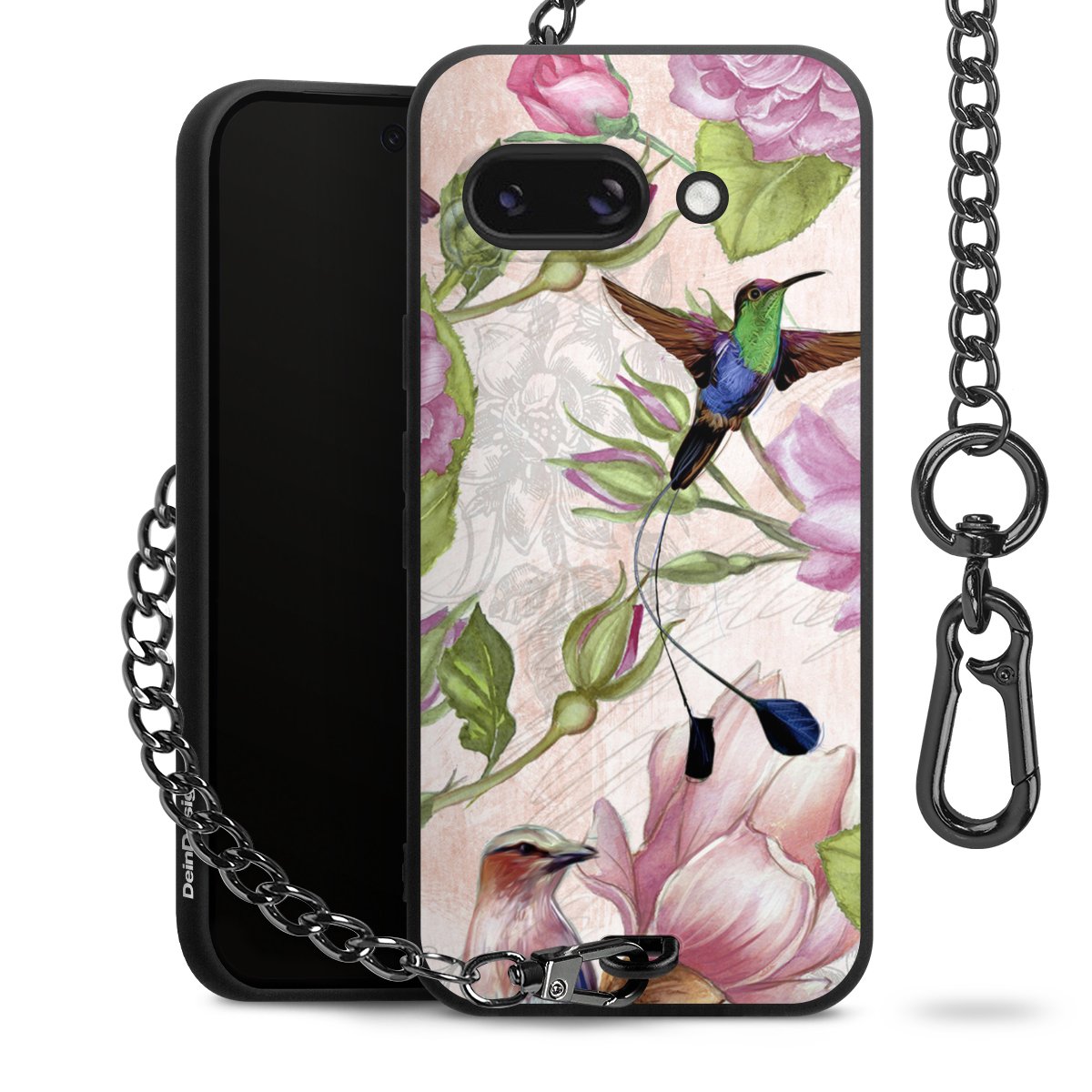 • Mattschwarze Handyhülle mit Metallkette