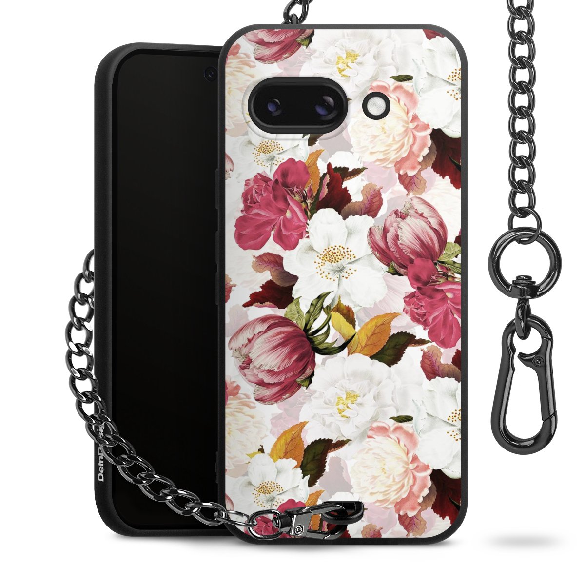 Die mattschwarze Silikon-Handyhülle besteht aus robustem TPU (thermoplastisches Polyurethan). Sie ist flexibel und schützt Dein Smartphone vor Stößen und Kratzern. Die Kette sowie der Karabinerhaken sind aus Metall in Gunmetal-Optik gefertigt. Für dieses Produkt kommen ausschließlich TÜV-geprüfte Materialien zum Einsatz.