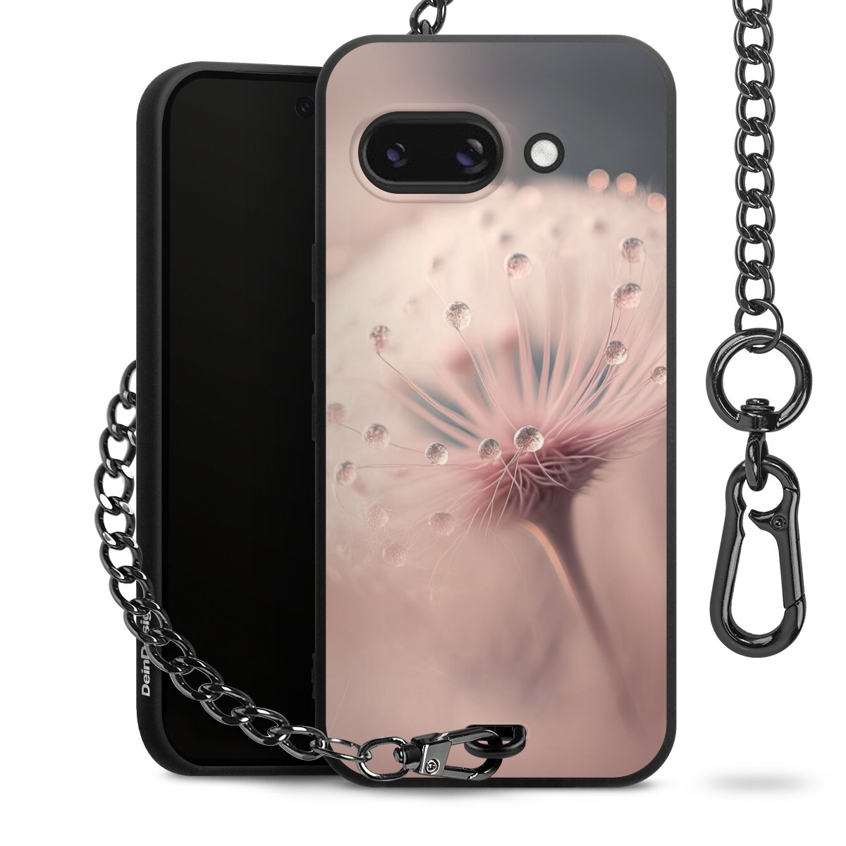 • Mattschwarze Handyhülle mit Metallkette