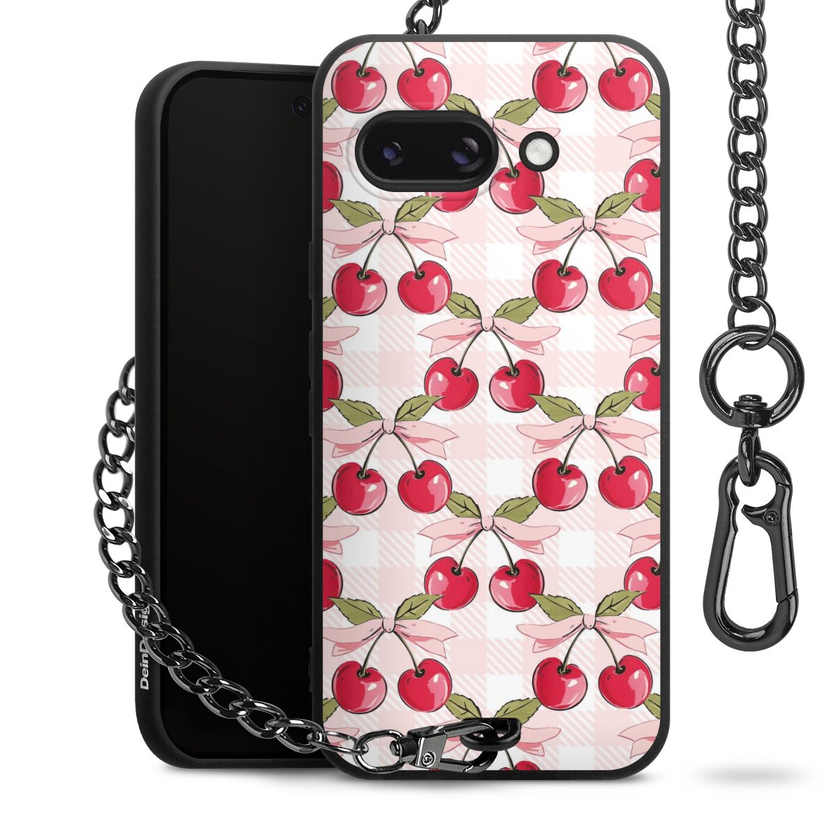 Die mattschwarze Silikon-Handyhülle besteht aus robustem TPU (thermoplastisches Polyurethan). Sie ist flexibel und schützt Dein Smartphone vor Stößen und Kratzern. Die Kette sowie der Karabinerhaken sind aus Metall in Gunmetal-Optik gefertigt. Für dieses Produkt kommen ausschließlich TÜV-geprüfte Materialien zum Einsatz.