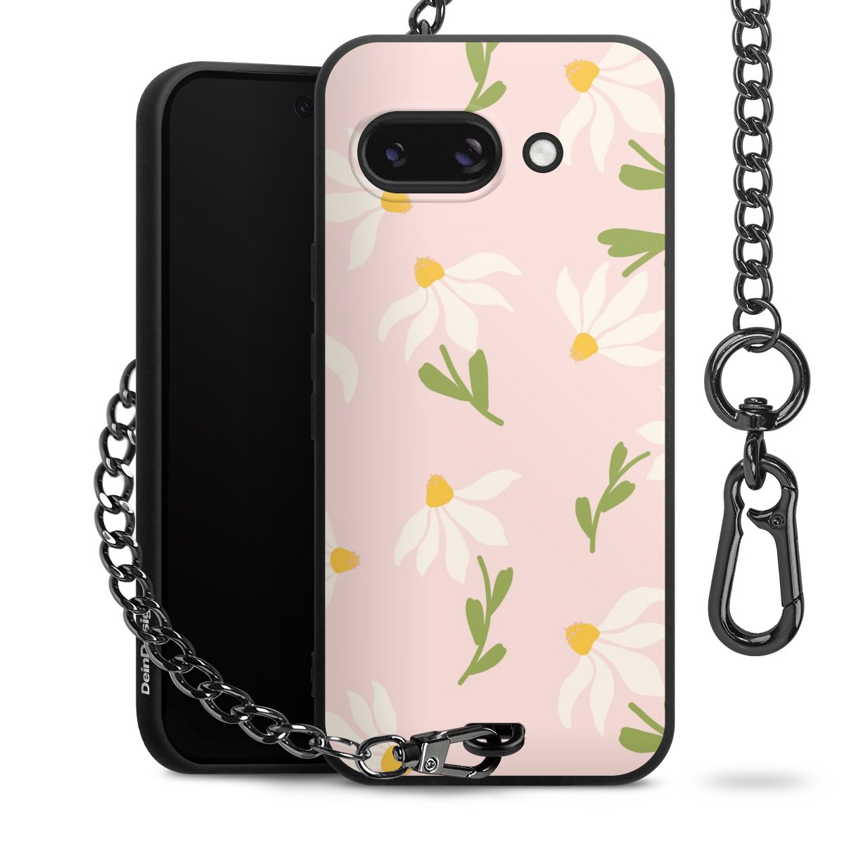 • Mattschwarze Handyhülle mit Metallkette