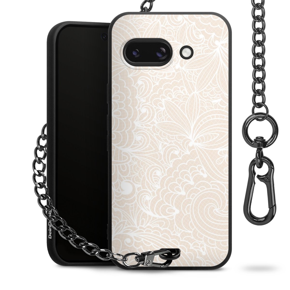 Die mattschwarze Silikon-Handyhülle besteht aus robustem TPU (thermoplastisches Polyurethan). Sie ist flexibel und schützt Dein Smartphone vor Stößen und Kratzern. Die Kette sowie der Karabinerhaken sind aus Metall in Gunmetal-Optik gefertigt. Für dieses Produkt kommen ausschließlich TÜV-geprüfte Materialien zum Einsatz.