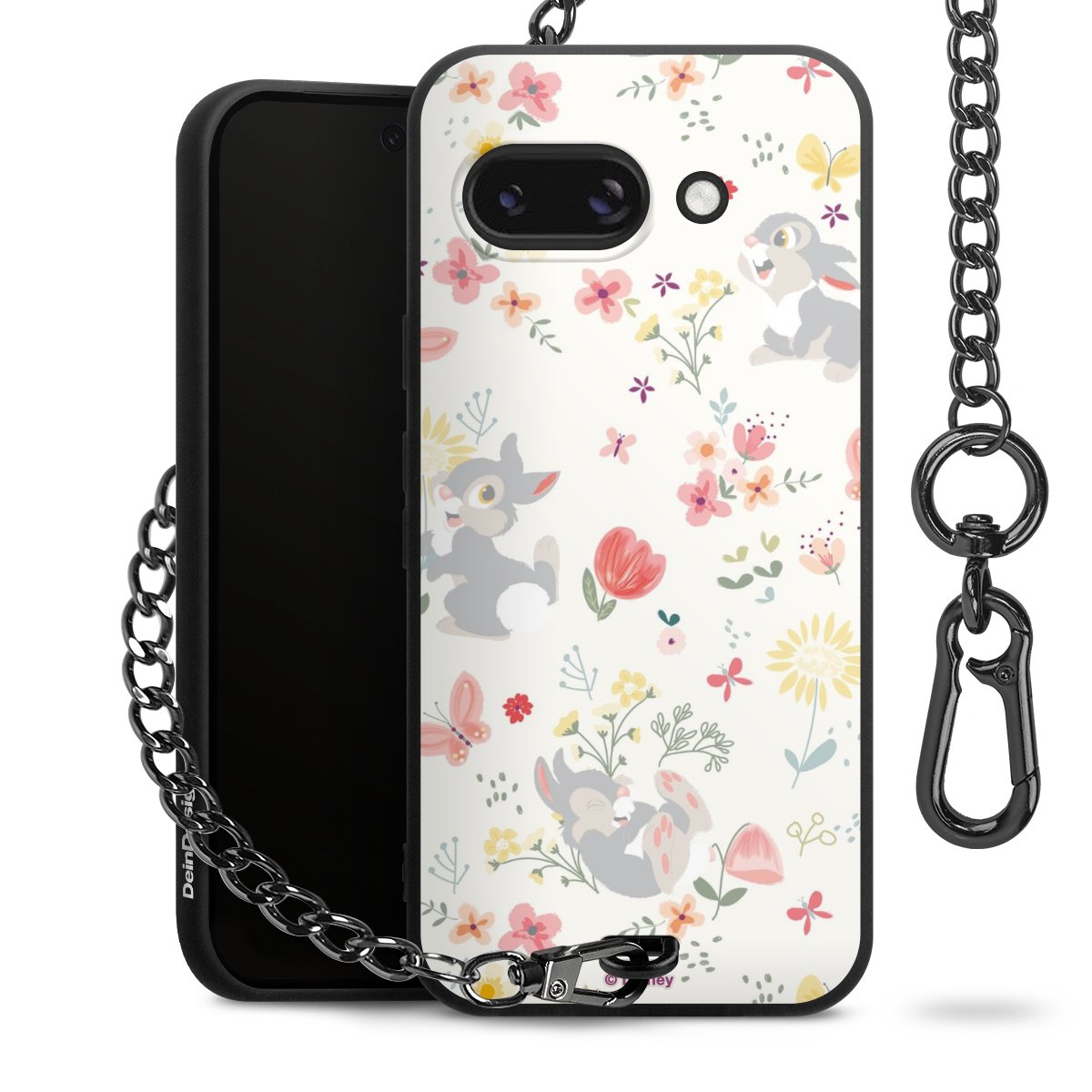 Die Handyhülle verfügt über eine mittig am unteren Rand platzierte Öse, an der die Metallkette stabil befestigt ist. Bestelle die Hülle einfach für Dein Smartphone-Modell, dann passt sie wie angegossen und Du brauchst sie bloß einmal anzudrücken. Handy in die Tasche, Karabiner an den Hosenbund – schon kann die Party starten.