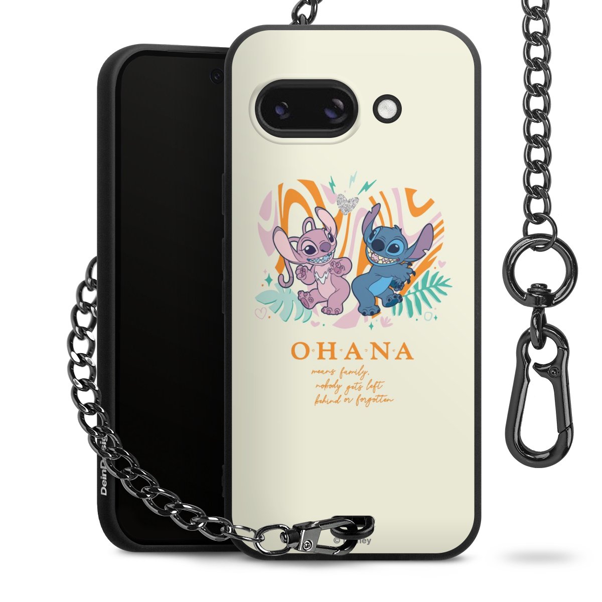 Die Handyhülle verfügt über eine mittig am unteren Rand platzierte Öse, an der die Metallkette stabil befestigt ist. Bestelle die Hülle einfach für Dein Smartphone-Modell, dann passt sie wie angegossen und Du brauchst sie bloß einmal anzudrücken. Handy in die Tasche, Karabiner an den Hosenbund – schon kann die Party starten.