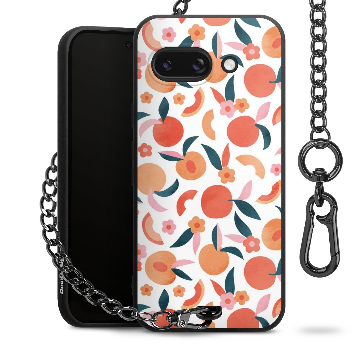 • Mattschwarze Handyhülle mit Metallkette