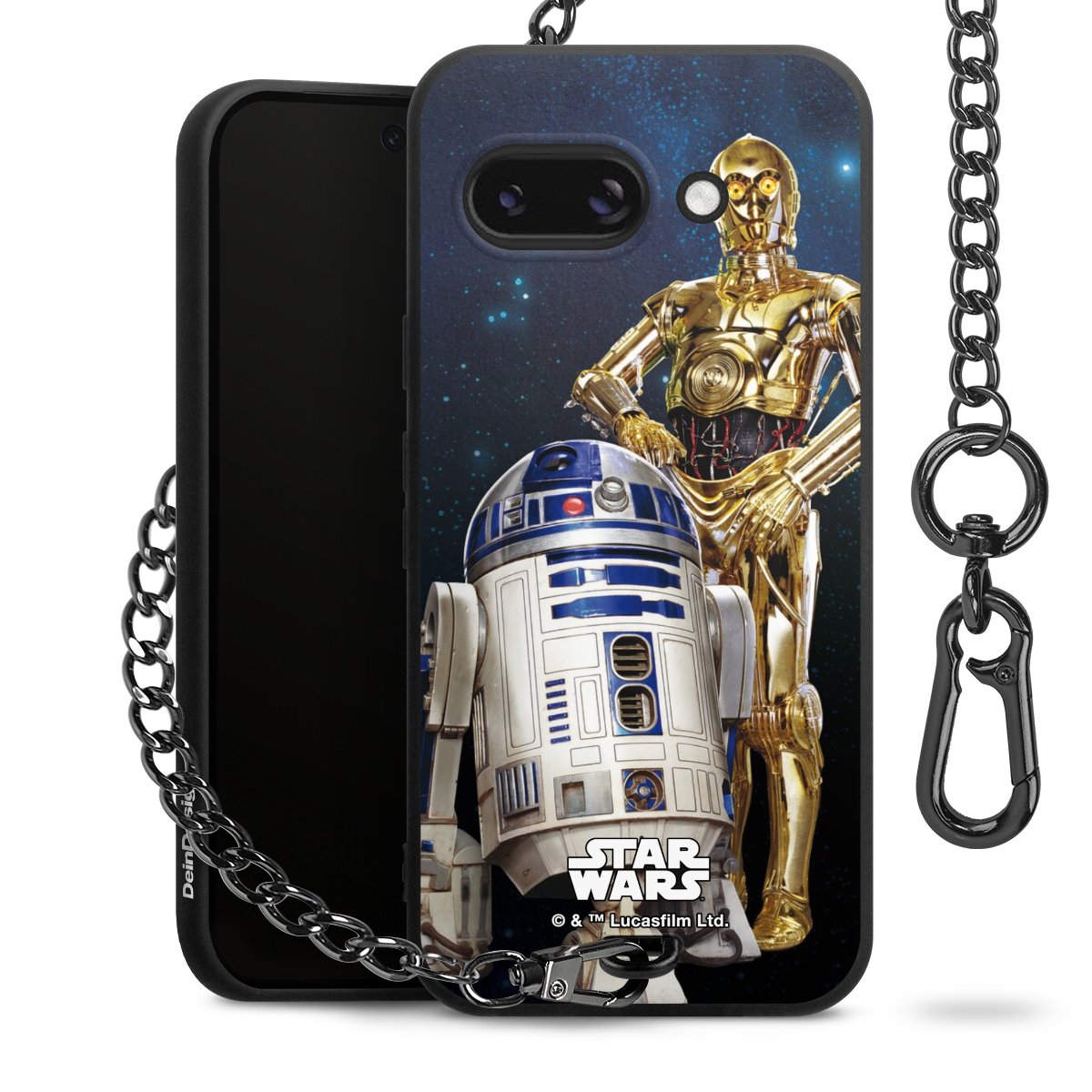 Darth Vader, C3PO, R2D2 und Meister Yoda findest Du in unserem Star Wars Shop auf DeinDesign. Natürlich gibt es auch Star Wars Handyhüllen mit den legendären Charakteren Luke Skywalker, Prinzessin Leia und Han Solo, den Helden der ersten Saga. Wer jedoch die Hauptfiguren der neuen Star Wars Filme ins Herz geschlossen hat, kann auch Finn und Rey mit ihren mächtigen Waffen auf der Rückseite seines Smartphones haben. Die vielseitigen Schutzhüllen in verschiedenen Ausführungen sind das perfekte Geschenk für alle Star Wars Fans, die ihrem Smartphone eine individuelle Note verleihen wollen.