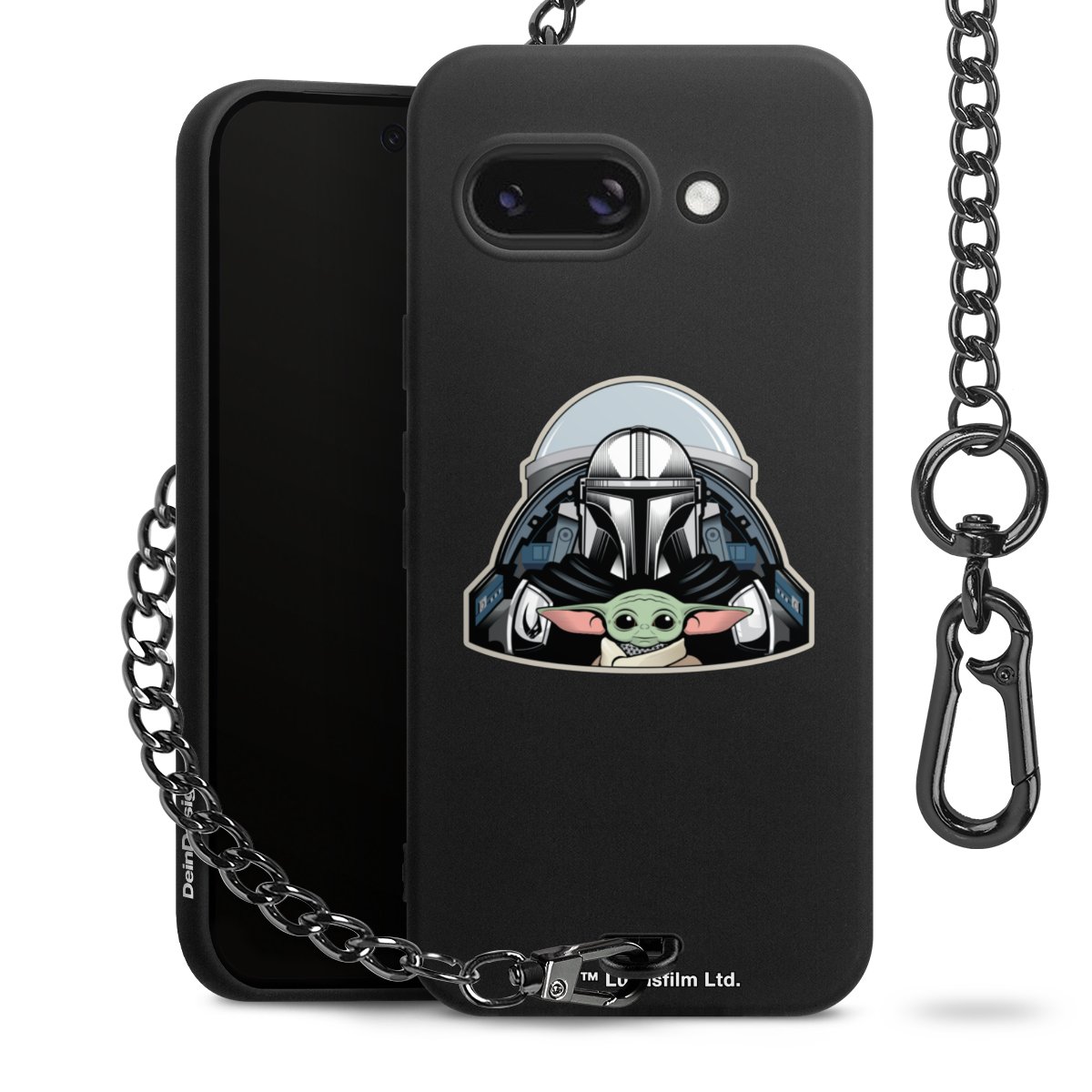 Die mattschwarze Silikon-Handyhülle besteht aus robustem TPU (thermoplastisches Polyurethan). Sie ist flexibel und schützt Dein Smartphone vor Stößen und Kratzern. Die Kette sowie der Karabinerhaken sind aus Metall in Gunmetal-Optik gefertigt. Für dieses Produkt kommen ausschließlich TÜV-geprüfte Materialien zum Einsatz.