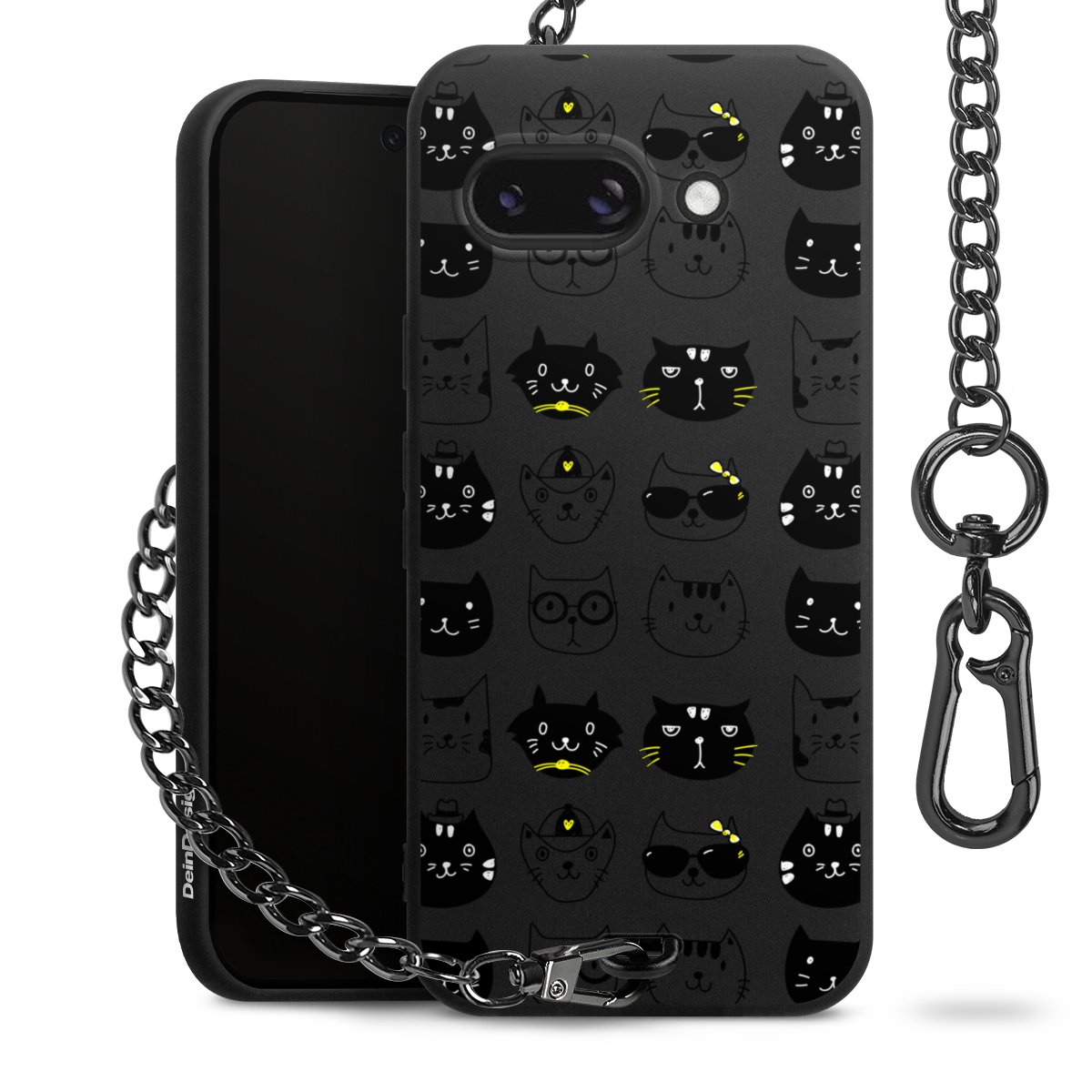 - Mattschwarze Handyhülle mit Metallkette