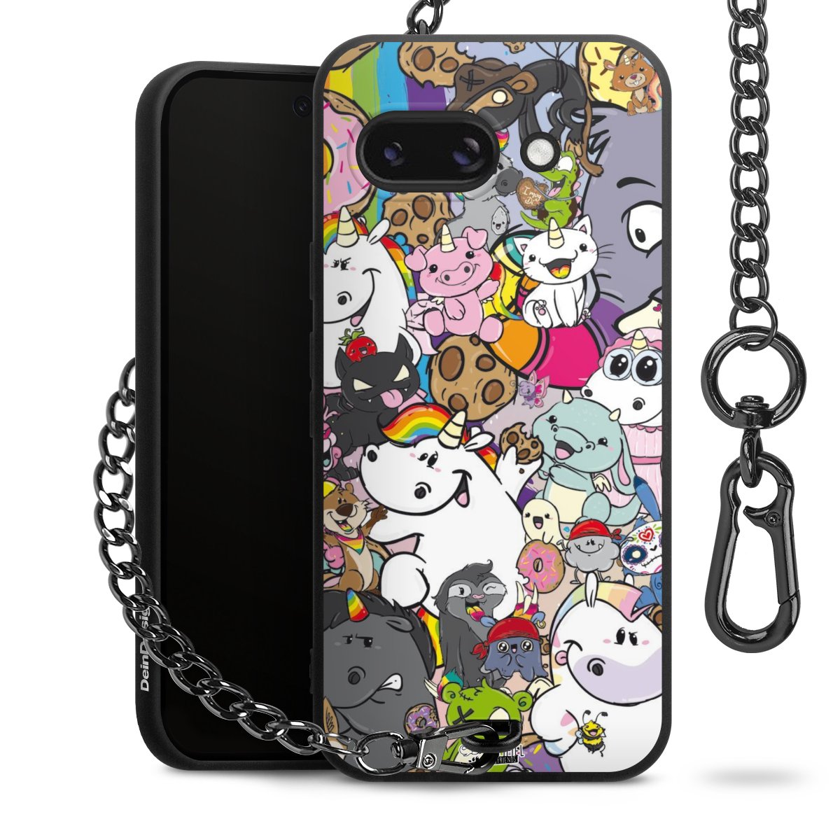Die mattschwarze Silikon-Handyhülle besteht aus robustem TPU (thermoplastisches Polyurethan). Sie ist flexibel und schützt Dein Smartphone vor Stößen und Kratzern. Die Kette sowie der Karabinerhaken sind aus Metall in Gunmetal-Optik gefertigt. Für dieses Produkt kommen ausschließlich TÜV-geprüfte Materialien zum Einsatz.