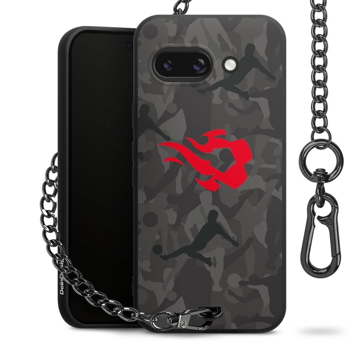 Die mattschwarze Silikon-Handyhülle besteht aus robustem TPU (thermoplastisches Polyurethan). Sie ist flexibel und schützt Dein Smartphone vor Stößen und Kratzern. Die Kette sowie der Karabinerhaken sind aus Metall in Gunmetal-Optik gefertigt. Für dieses Produkt kommen ausschließlich TÜV-geprüfte Materialien zum Einsatz.