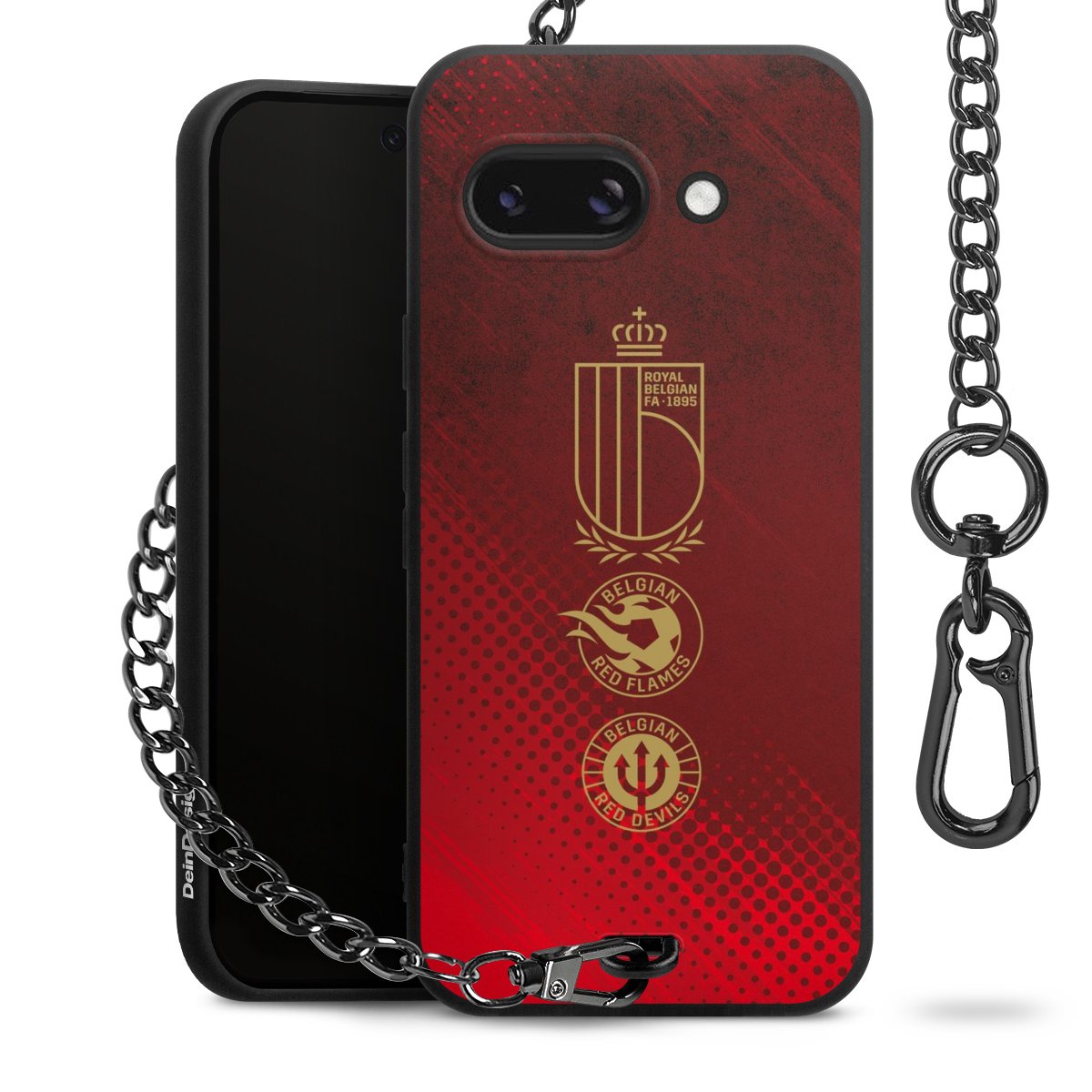 Die mattschwarze Silikon-Handyhülle besteht aus robustem TPU (thermoplastisches Polyurethan). Sie ist flexibel und schützt Dein Smartphone vor Stößen und Kratzern. Die Kette sowie der Karabinerhaken sind aus Metall in Gunmetal-Optik gefertigt. Für dieses Produkt kommen ausschließlich TÜV-geprüfte Materialien zum Einsatz.