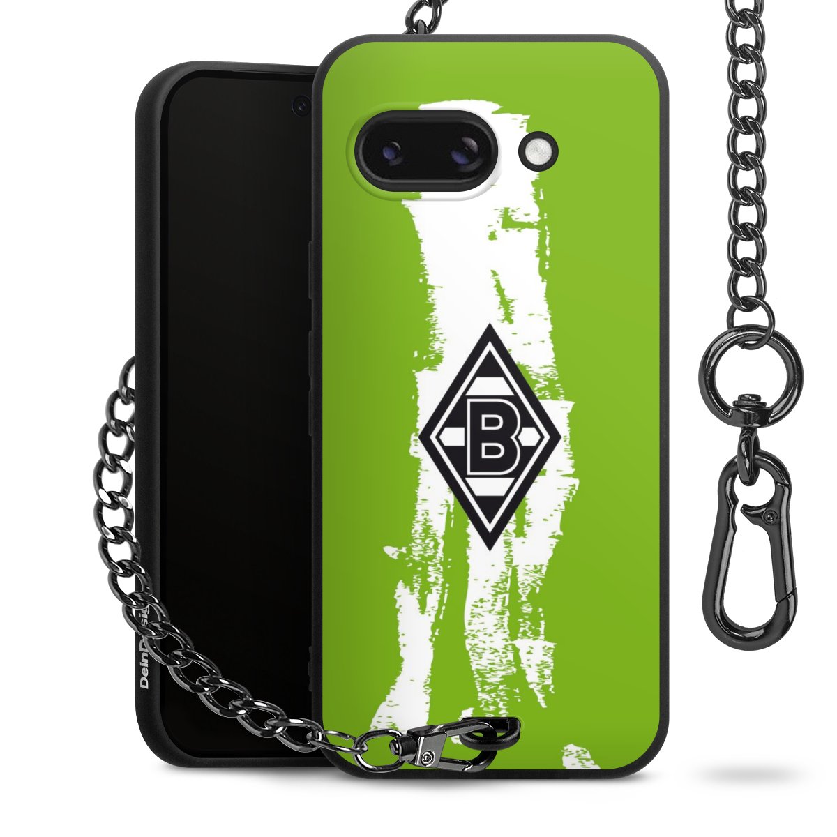 Die mattschwarze Silikon-Handyhülle besteht aus robustem TPU (thermoplastisches Polyurethan). Sie ist flexibel und schützt Dein Smartphone vor Stößen und Kratzern. Die Kette sowie der Karabinerhaken sind aus Metall in Gunmetal-Optik gefertigt. Für dieses Produkt kommen ausschließlich TÜV-geprüfte Materialien zum Einsatz.